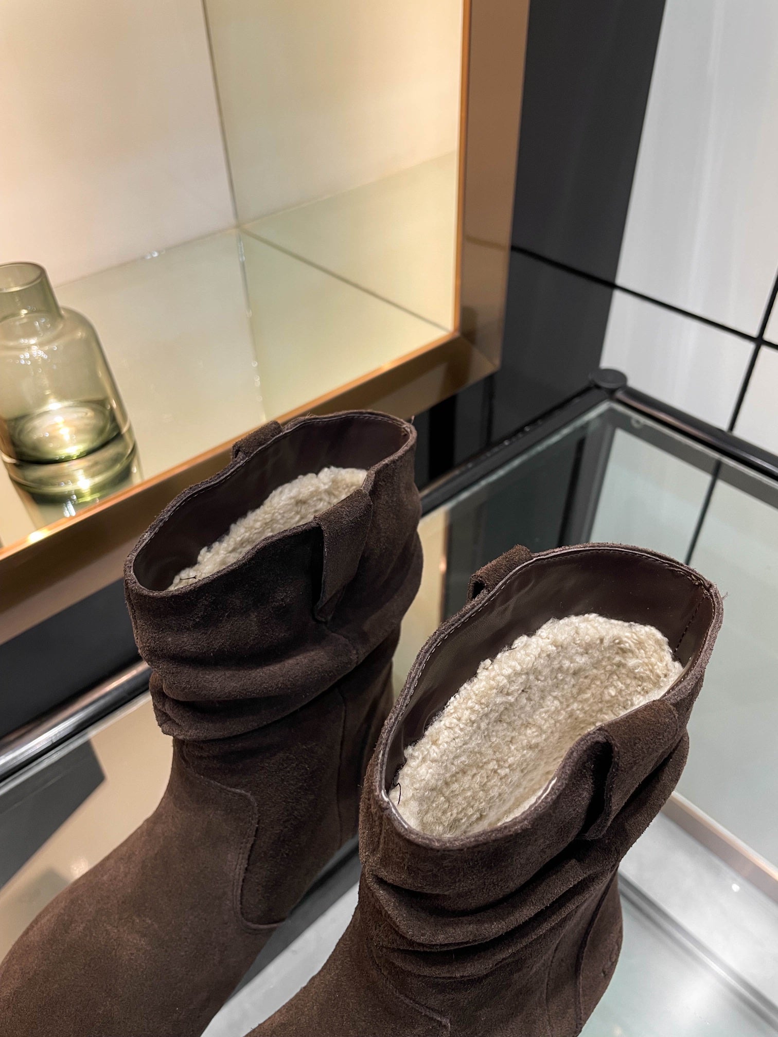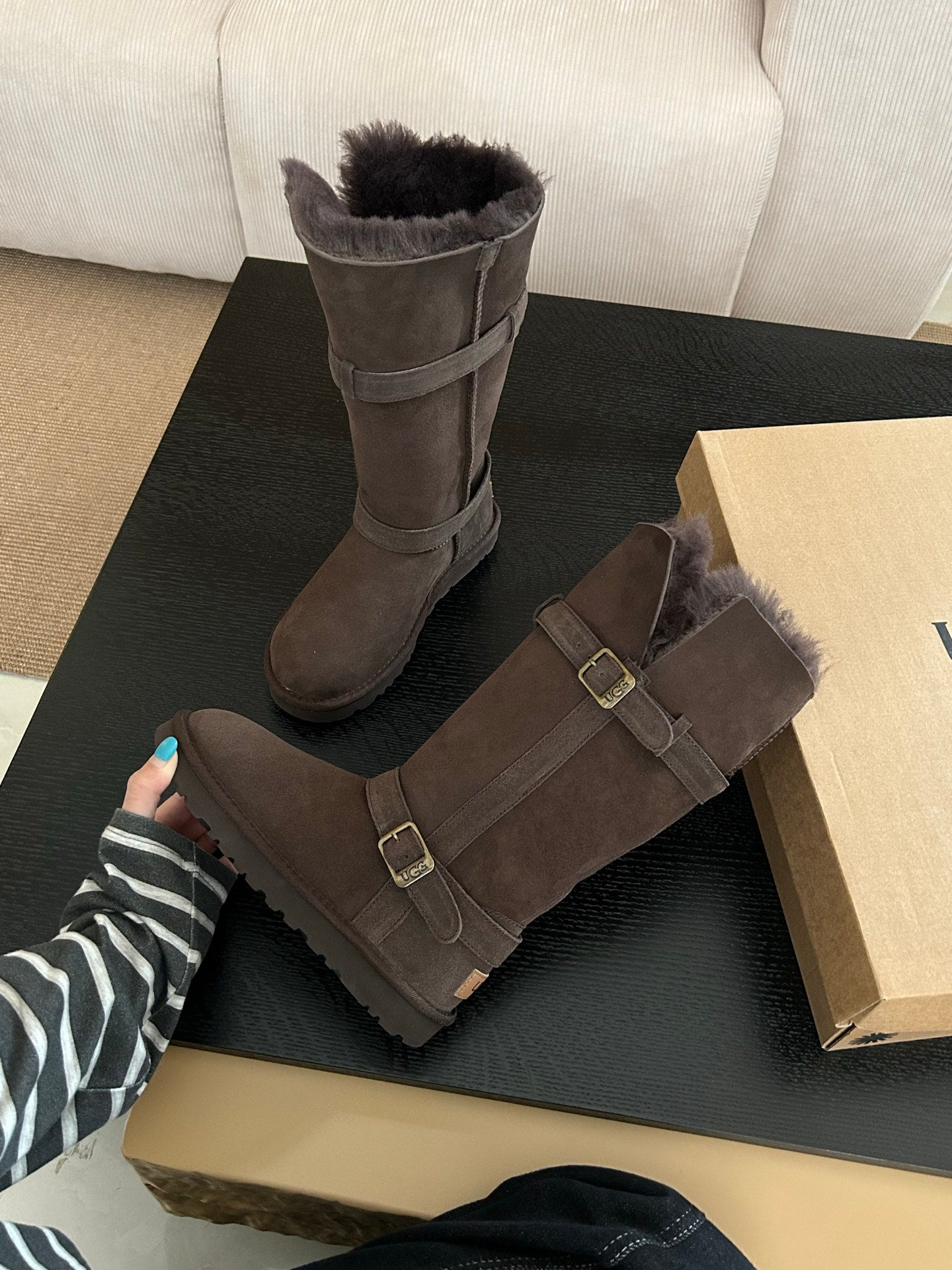 UGG Platform Foldable Tall Boots Dark Brown Suede Shearing