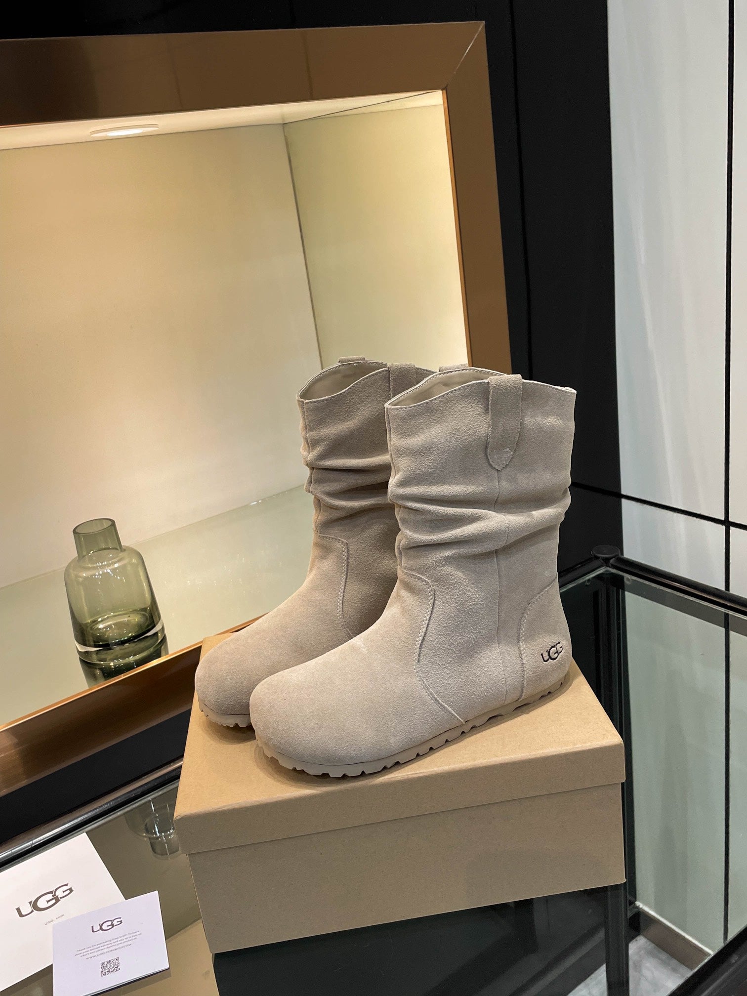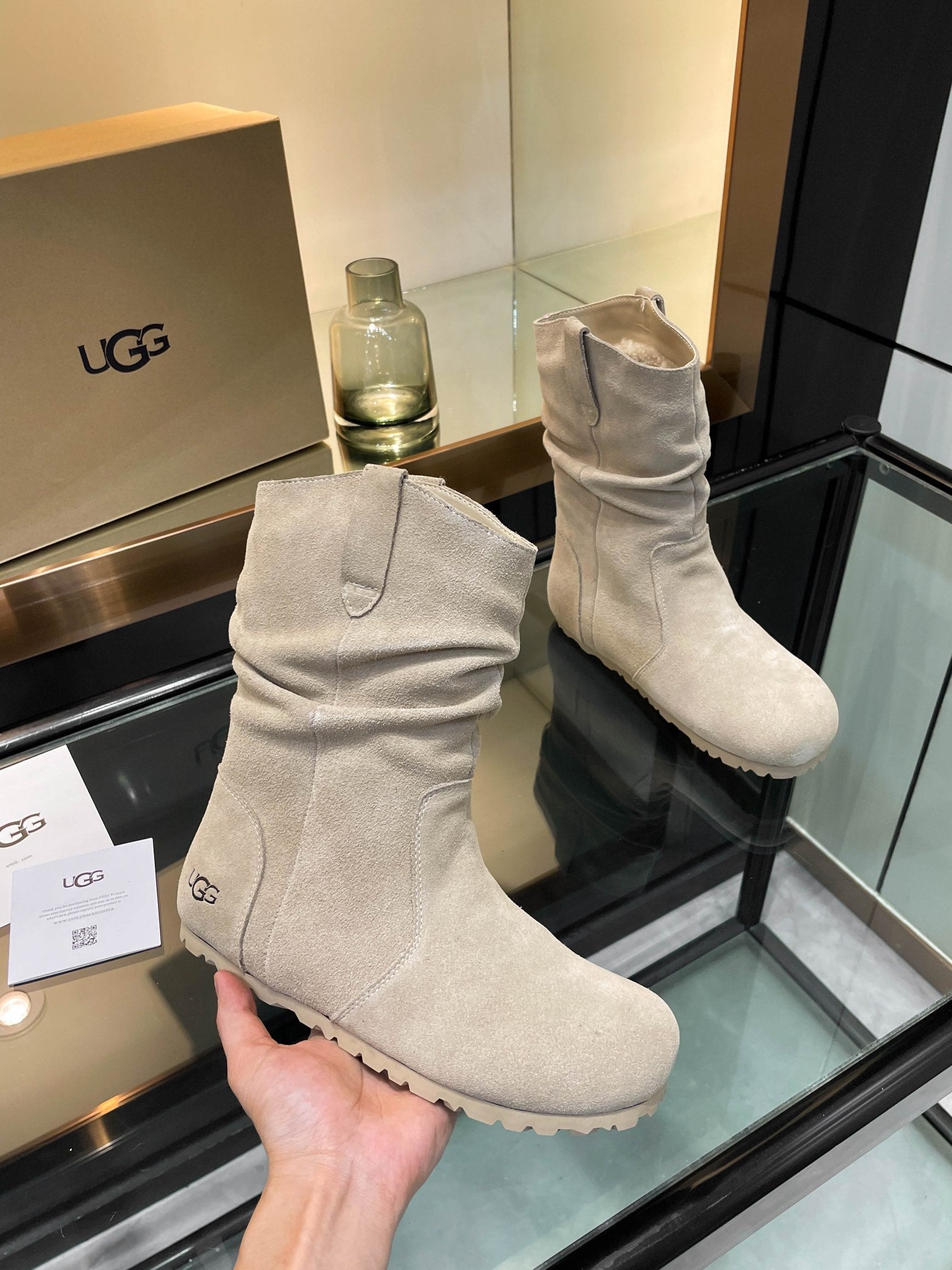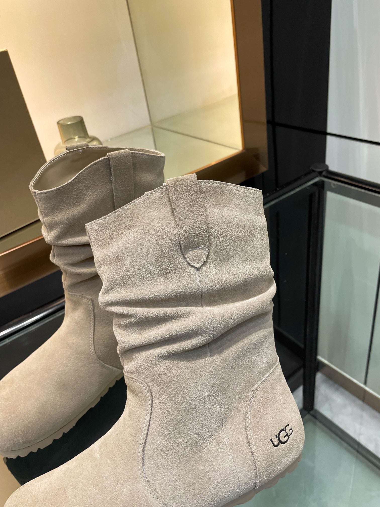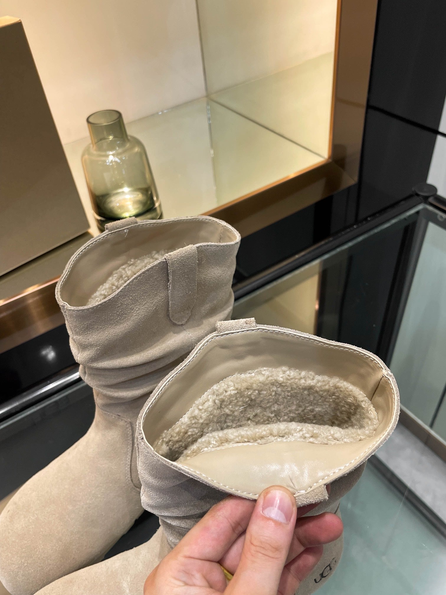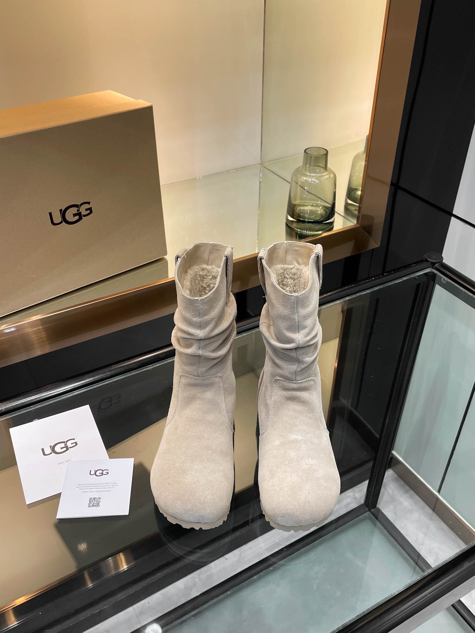 UGG Kallen Boots Taupe White Wool Suede 506602