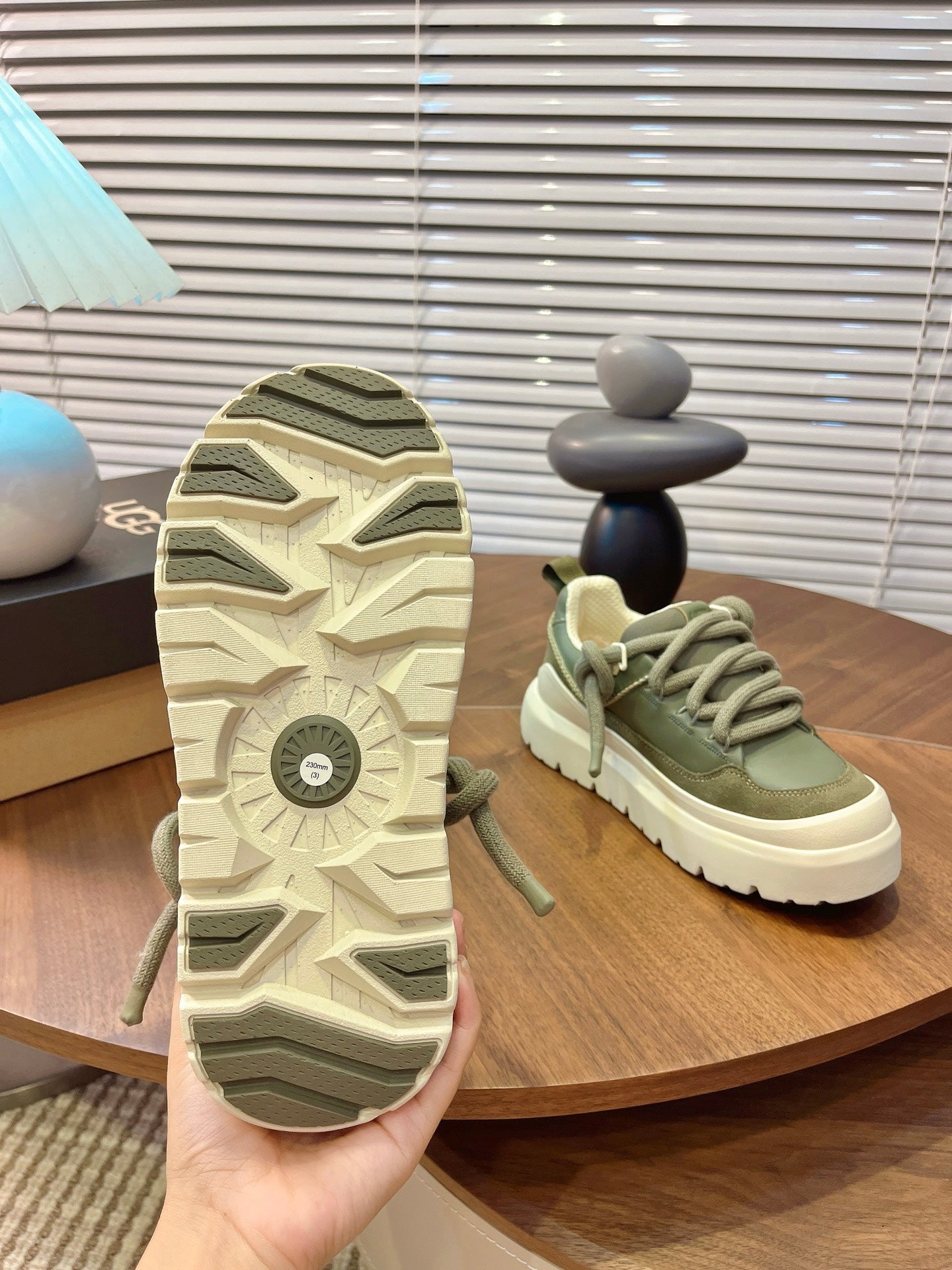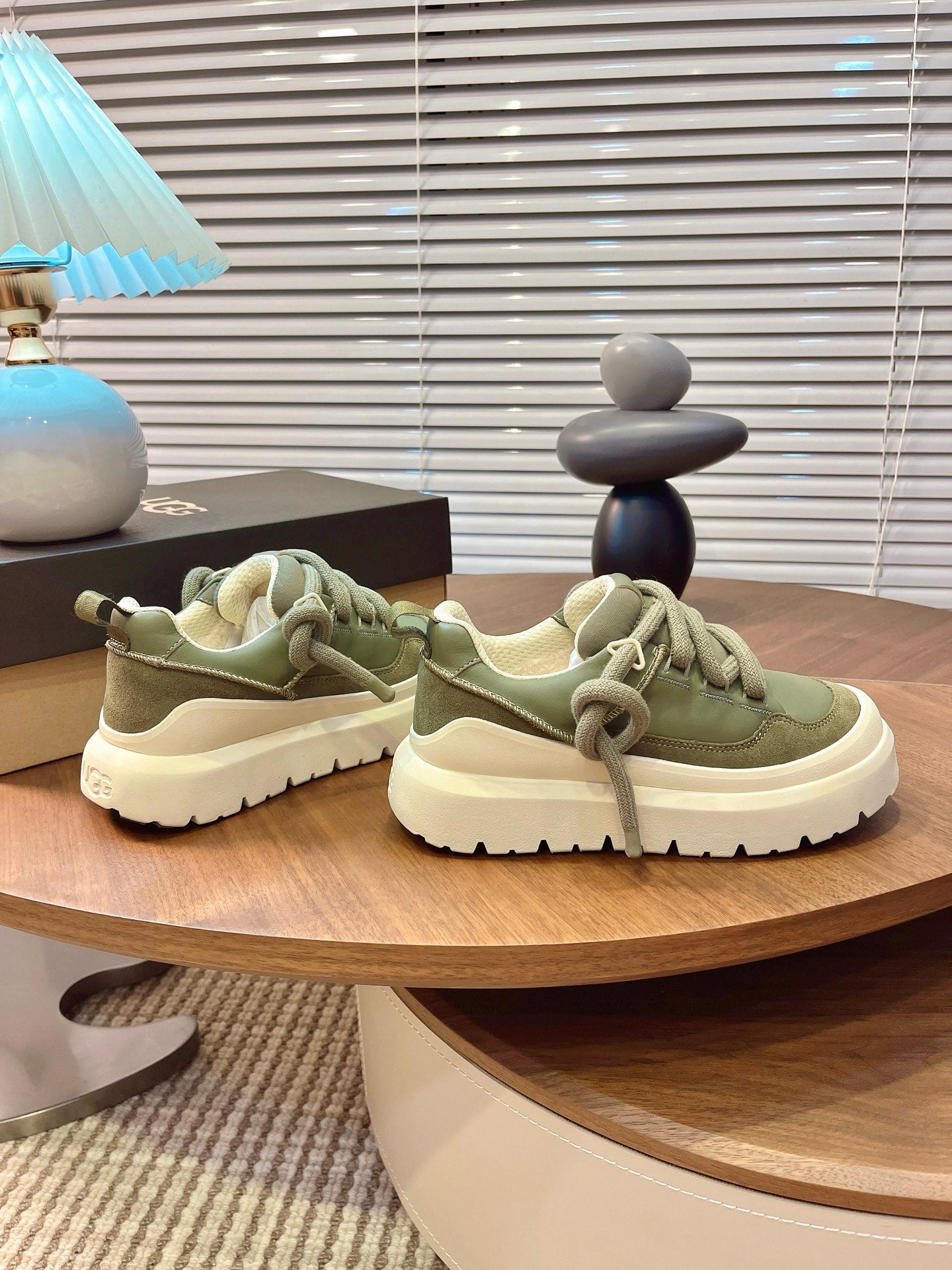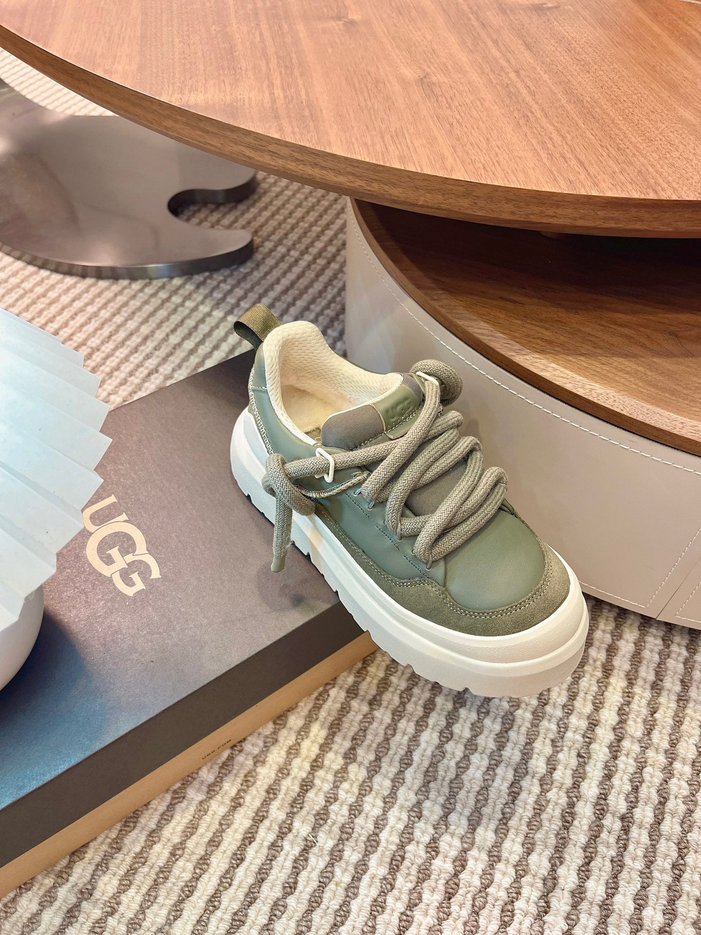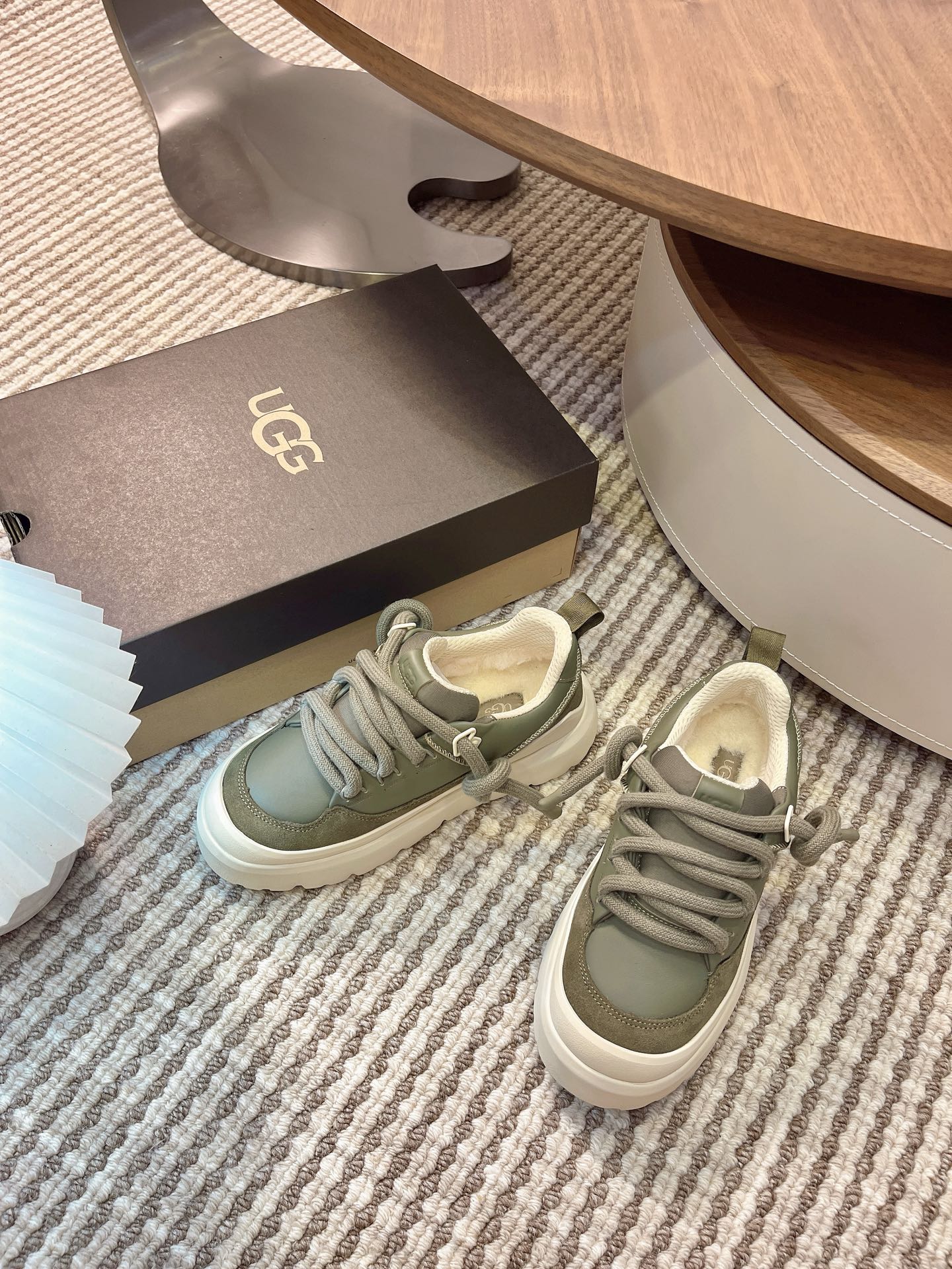 UGG Heritage Utility Sneakers Cream Olive Green Suede Cowhide