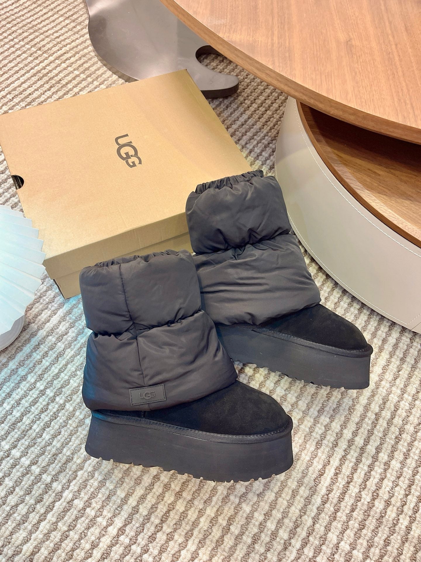 UGG Classic Mini Dipper Puffer Boots Black Suede Technical Fabric