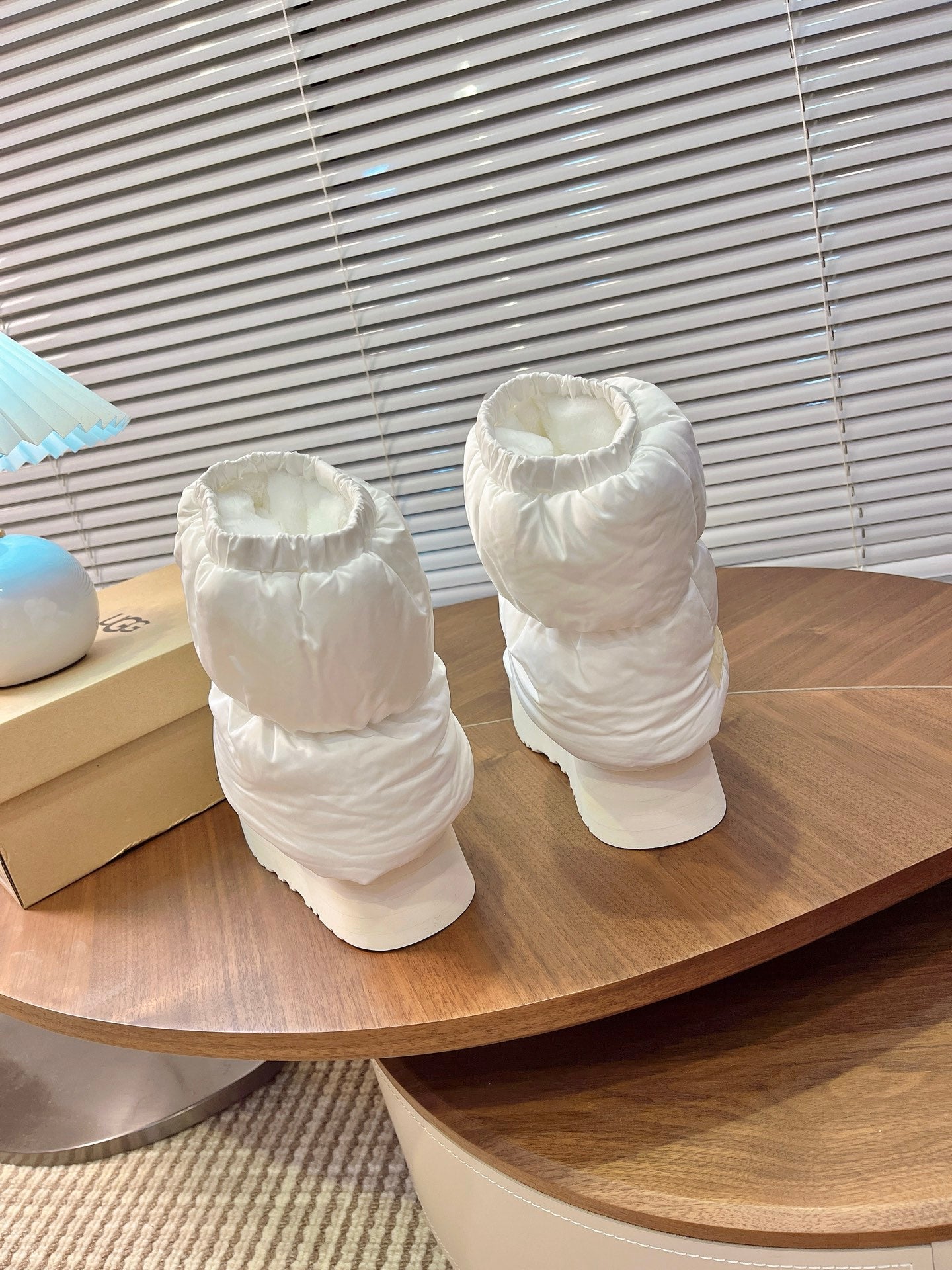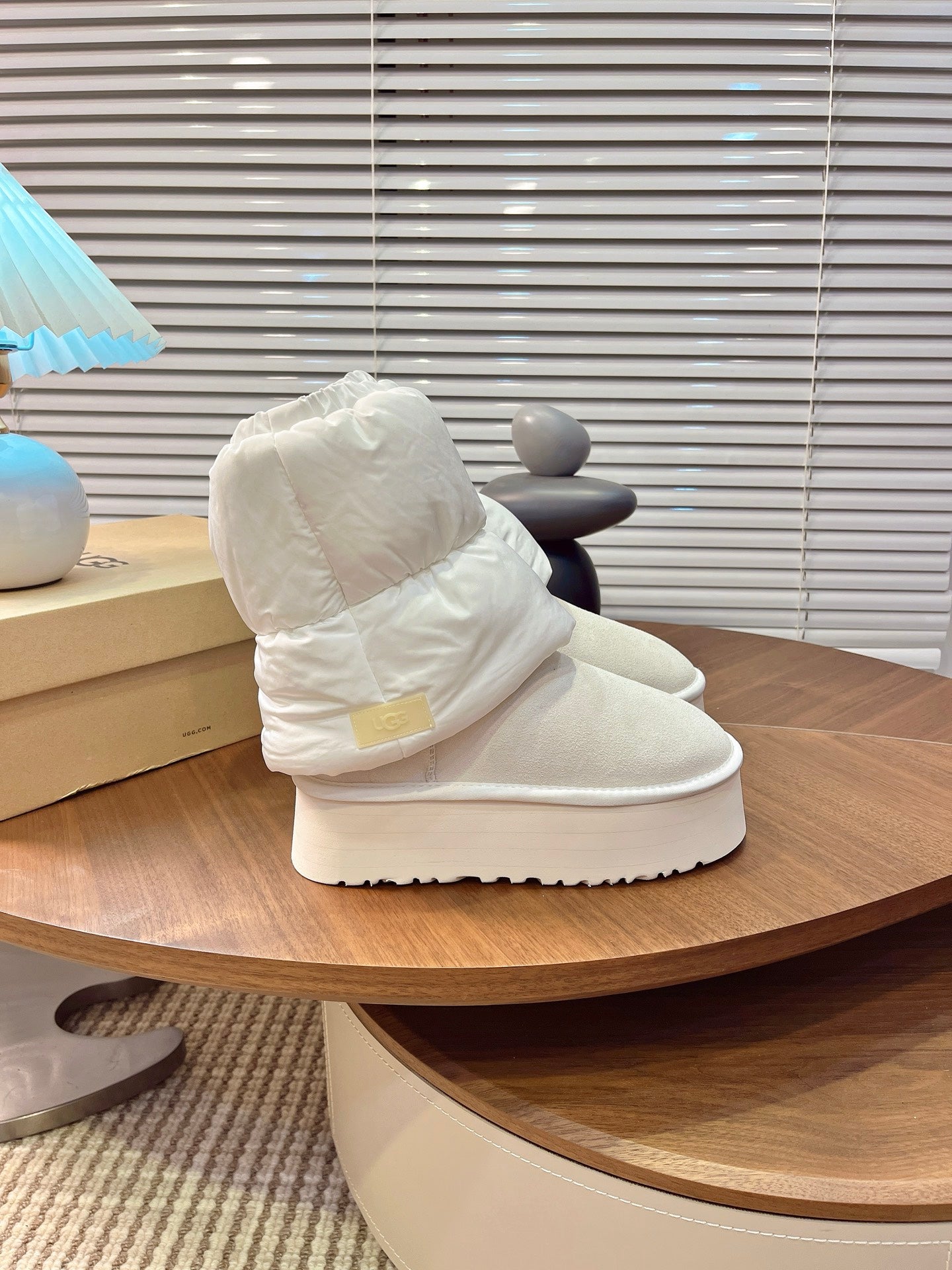 UGG Classic Mini Dipper Puffer Boots Off White Suede Technical Fabric