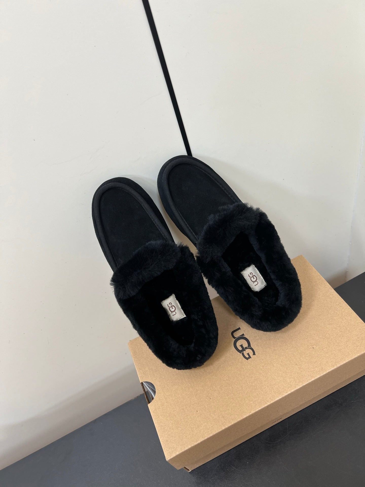 UGG Oil Jiji Slip-On Loafers Black Fur Suede 519525