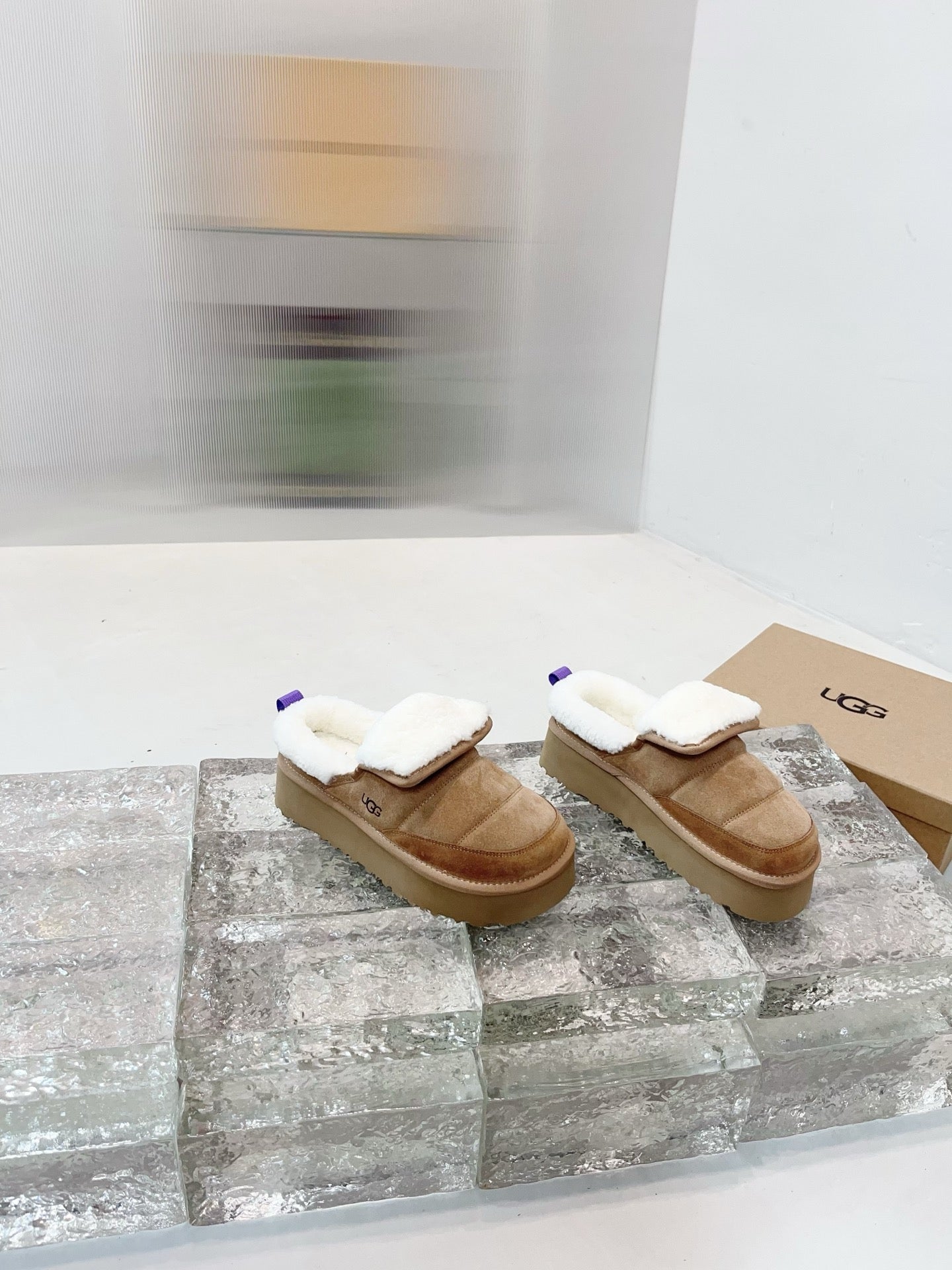 UGG Platform Ankle Puffer Brown Suede 522274