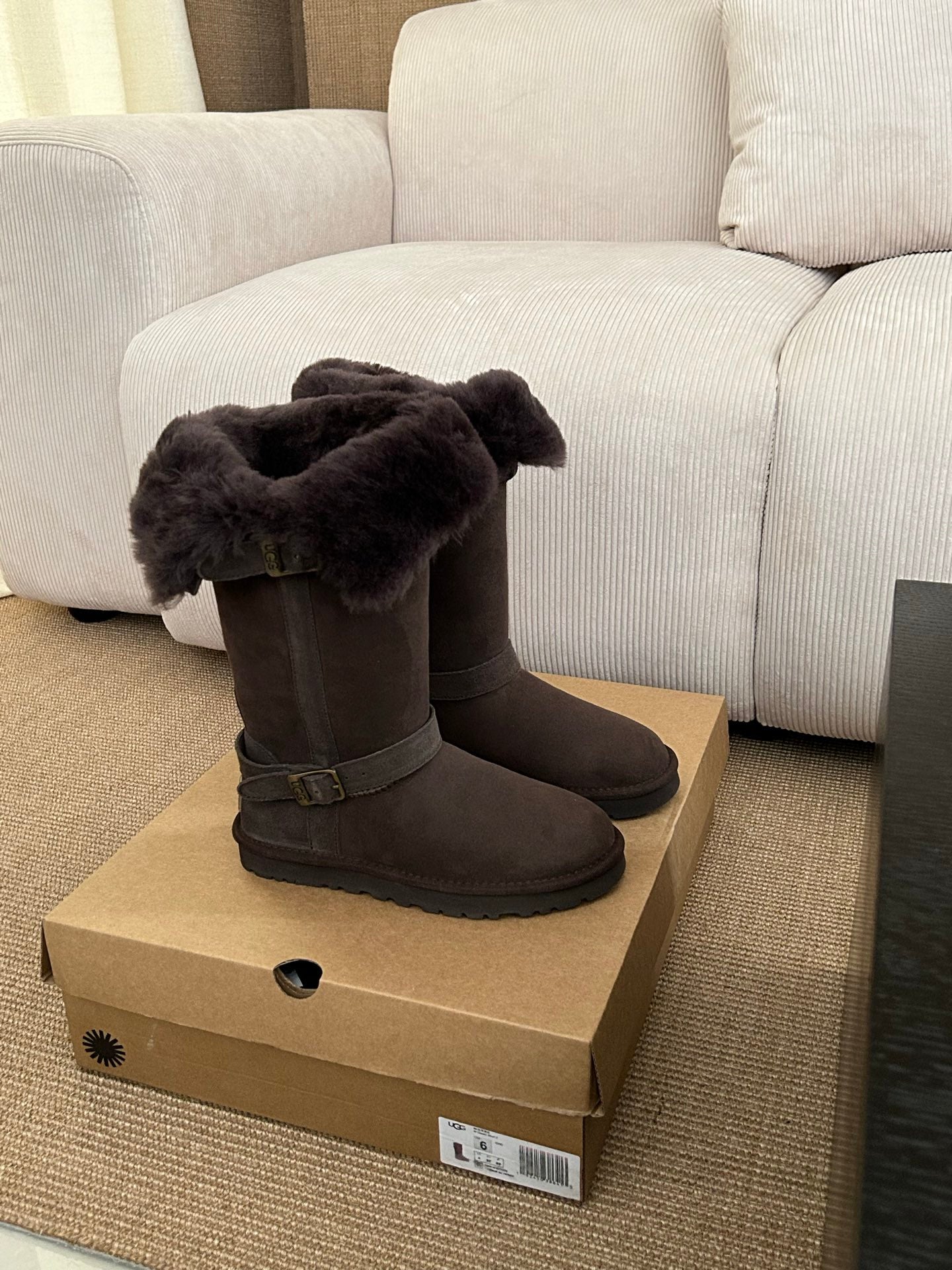 UGG Platform Foldable Tall Boots Dark Brown Suede Shearing