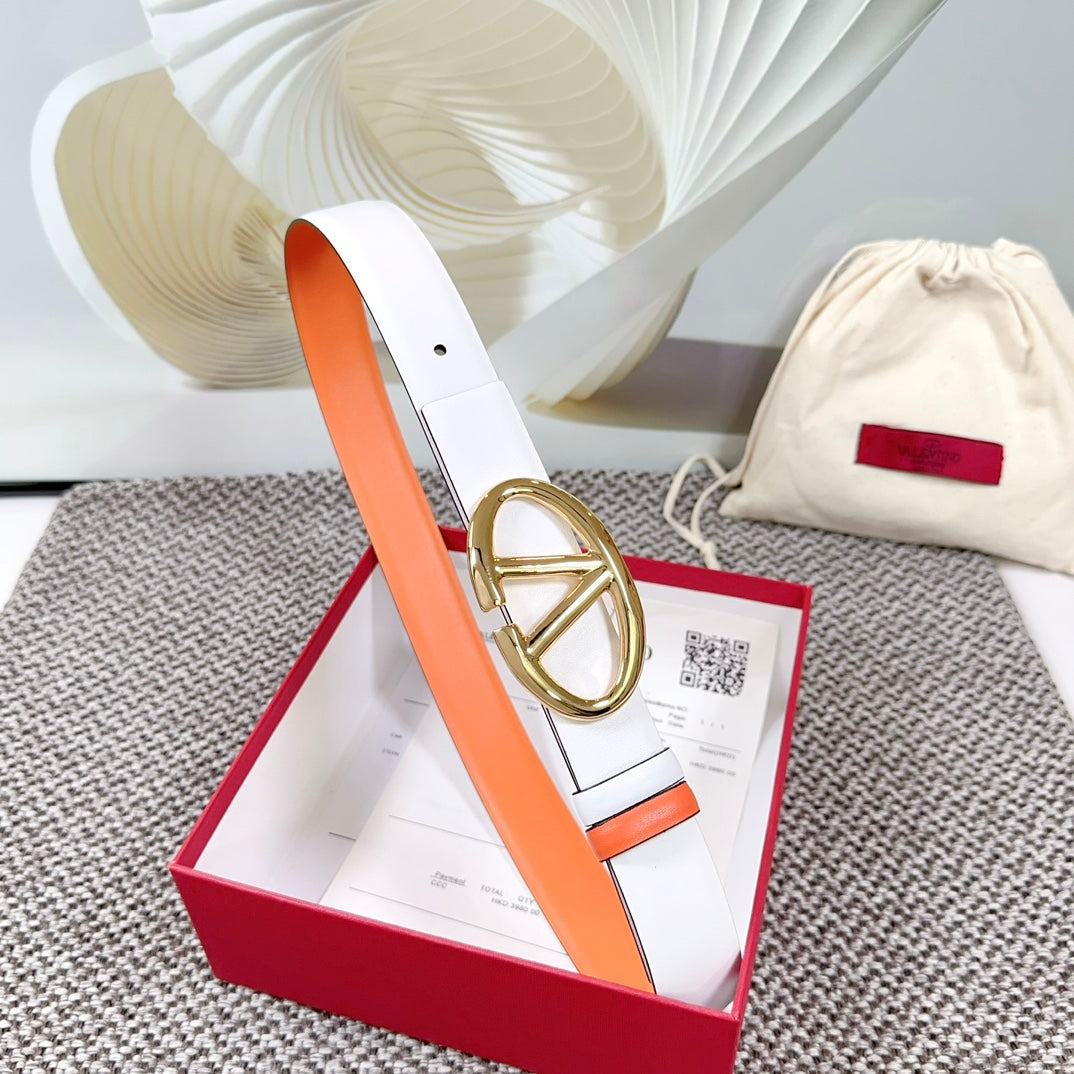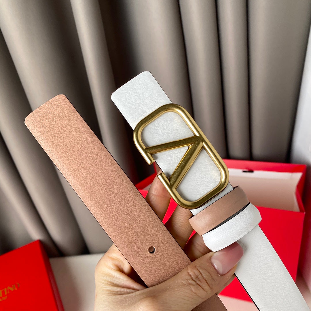 REVERSIBLE VLOGO SIGNATURE BELT IN GLOSSY BEIGE WHITE CALFSKIN SHW 30 MM
