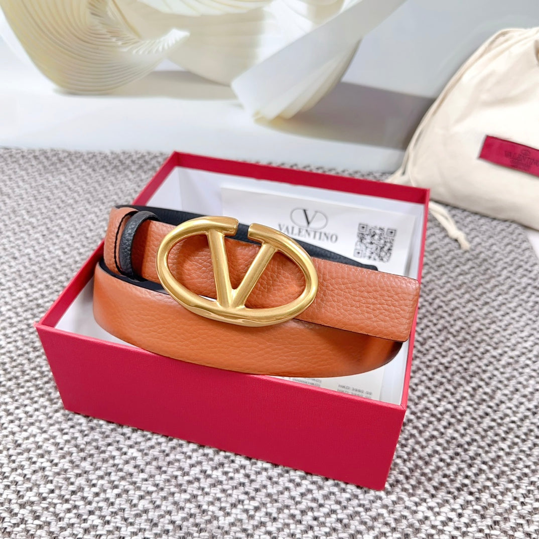 Vlogo Buckle Water Wave Gold Copper Glossy Beige Black Leather 20mm Belt
