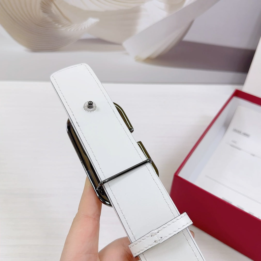 Valenti Toilde Iconographe Belt 40mm White Beige Calfskin Ruthenium-finish Buckle
