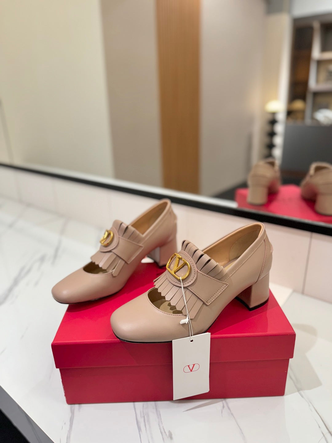 VT 2025 Signature Heeled Loafer Pure Beige Calf Leather 295070