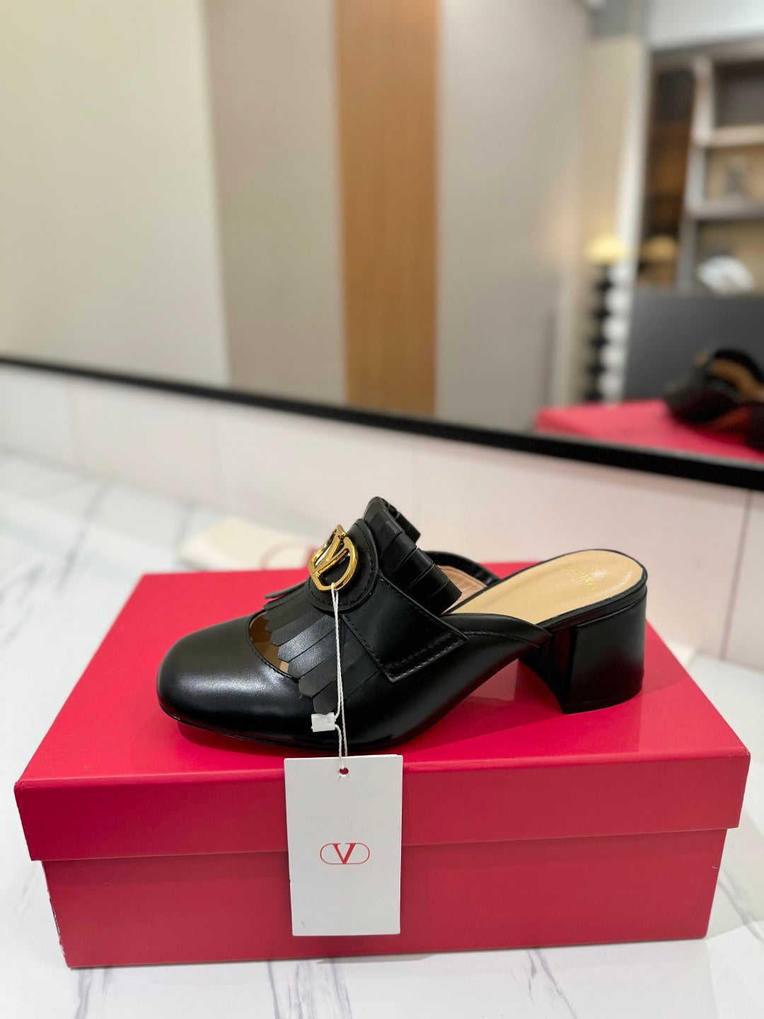 VT 2025 Signature Heeled Mule Black Calf Leather 295079