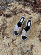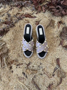Rockstud Crisscross Espadrilles 80mm Sandal Wedges Black Purple