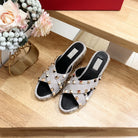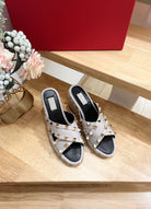 Rockstud Crisscross Espadrilles 80mm Sandal Wedges Ivory