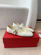 VLOGO LOCKER MARY-JANE BALLERINA IN WHITE CALFSKIN
