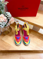 GARAVANI PRINTED COLORFUL CANVAS HIGH SANDAL 95 MM WITH EMBROIDERED LOGO