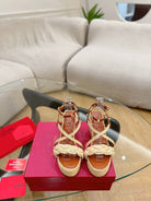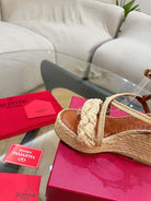 GARAVANI ROCKSTUD WEDGE SANDALS IN BRONZE BROWN CALFSKIN AND BEIGE RAFFIA