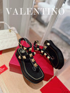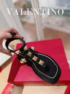 ROCKSTUD THONG SANDALS IN BLACK CALFSKIN