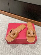 VLOGO CUT-OUT BRONZE BROWN CALFSKIN SLIDE SANDAL