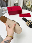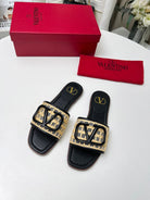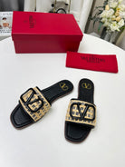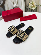 Vlogo embellished leather-trimmed raffia slides black