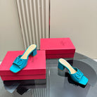 Vogo Signature High Shine Open Toe Sandals In Aqua Blue Glossy Lambskin 839819