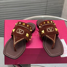 VT Rockstud Thong Sandals Brown Suede
