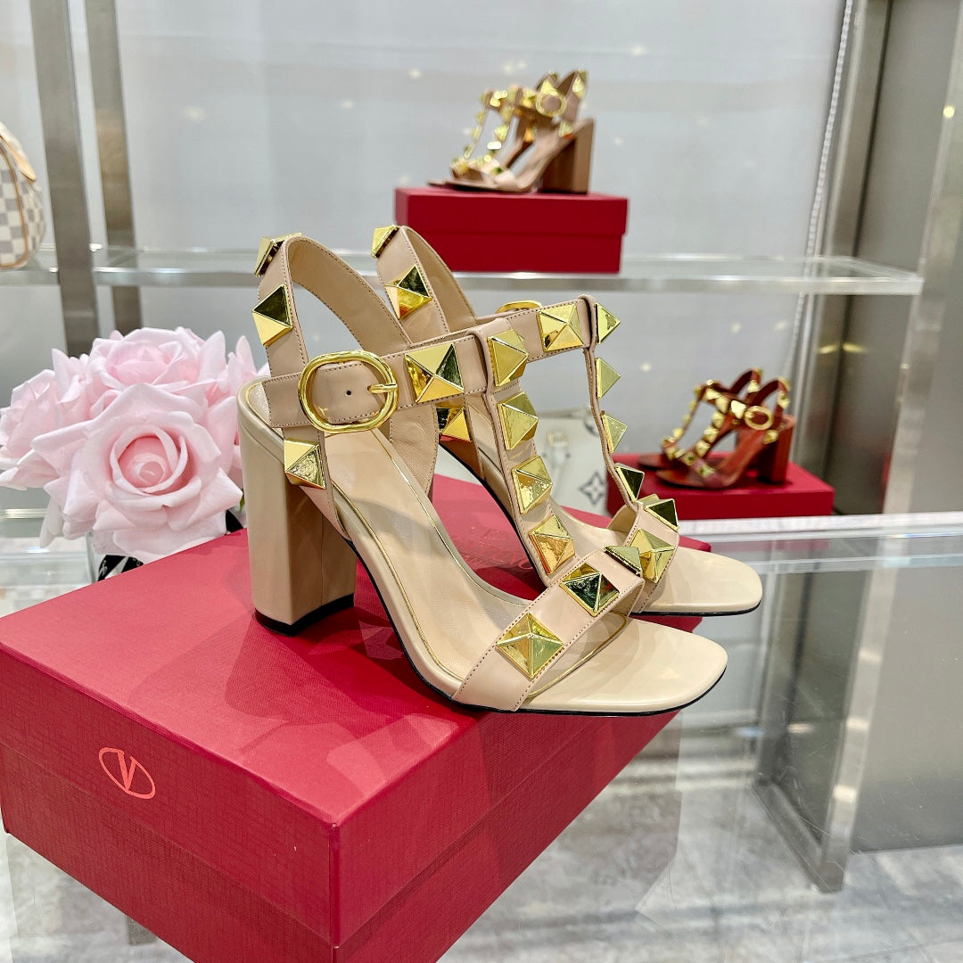 VT Rockstud Sandals Brown Gold Cowhide 369450