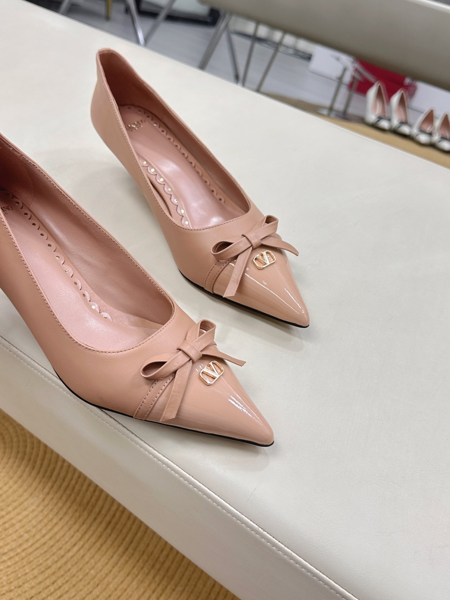 Bepointy Pump Bow In Rose Cannelle Cowhide And Patent Leather Pale Pink Sheepskin Linning 304258