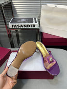 Heeled Sandals 6cm with Crystal Square Buckle Gold and Purple