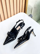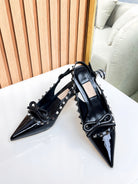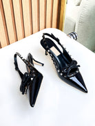 Rockstud Bow Slingback Black Calfskin With Matching Studs