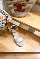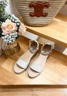 ROCKSTUD FLATFORM SANDAL IN WHITE CALFSKIN