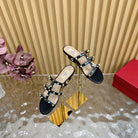 Rockstud Leather Caged Mule Sandals 10mm Black Sheepskin 307859