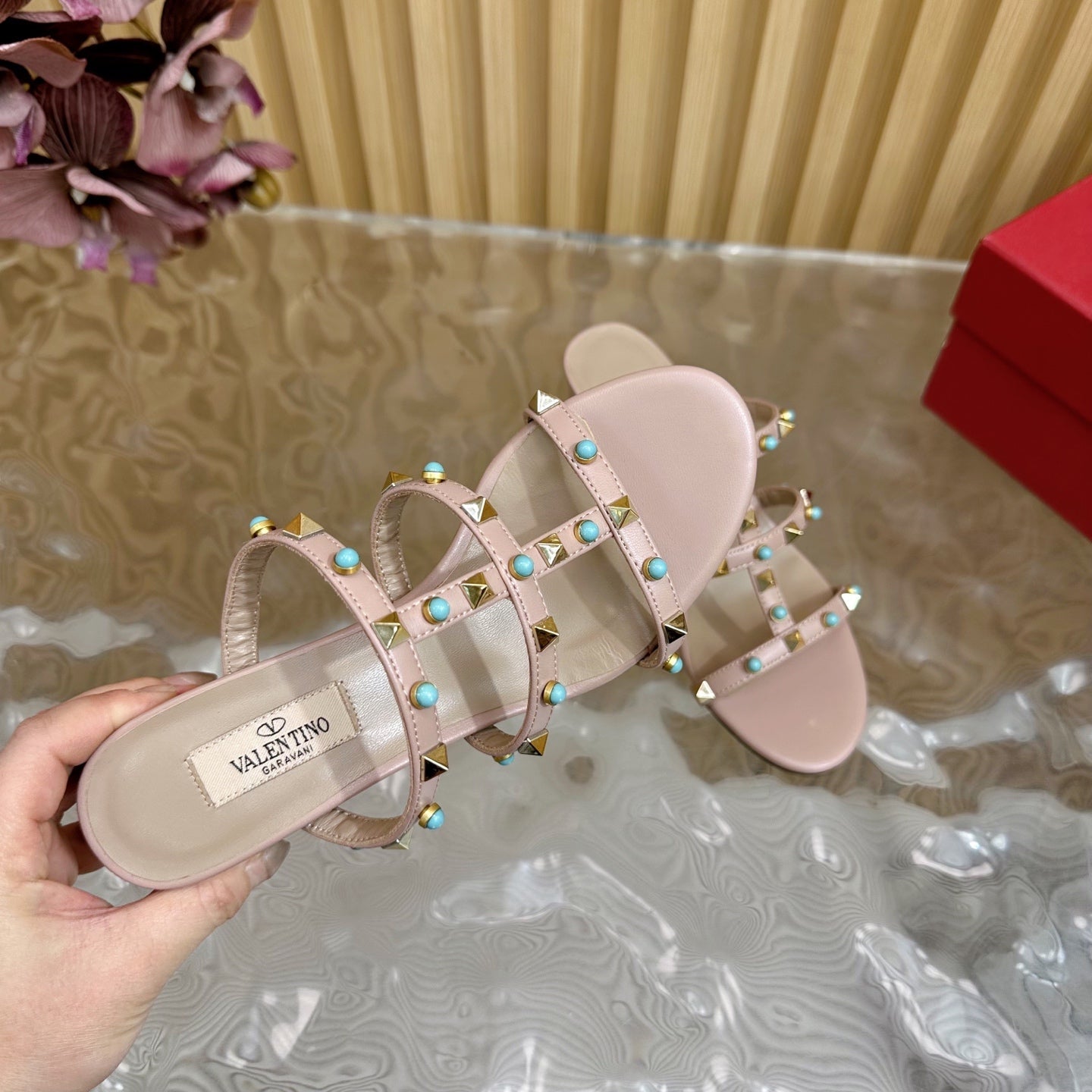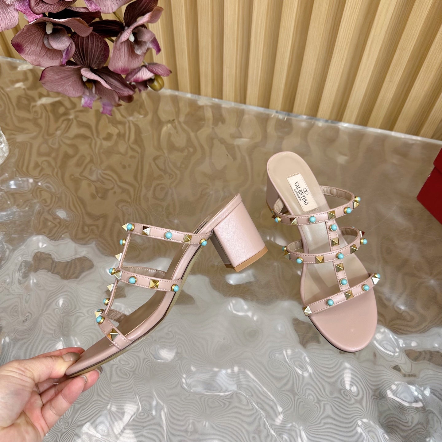 Rockstud Leather Caged Mule Sandals 60mm Pale Pink Sheepskin 307861