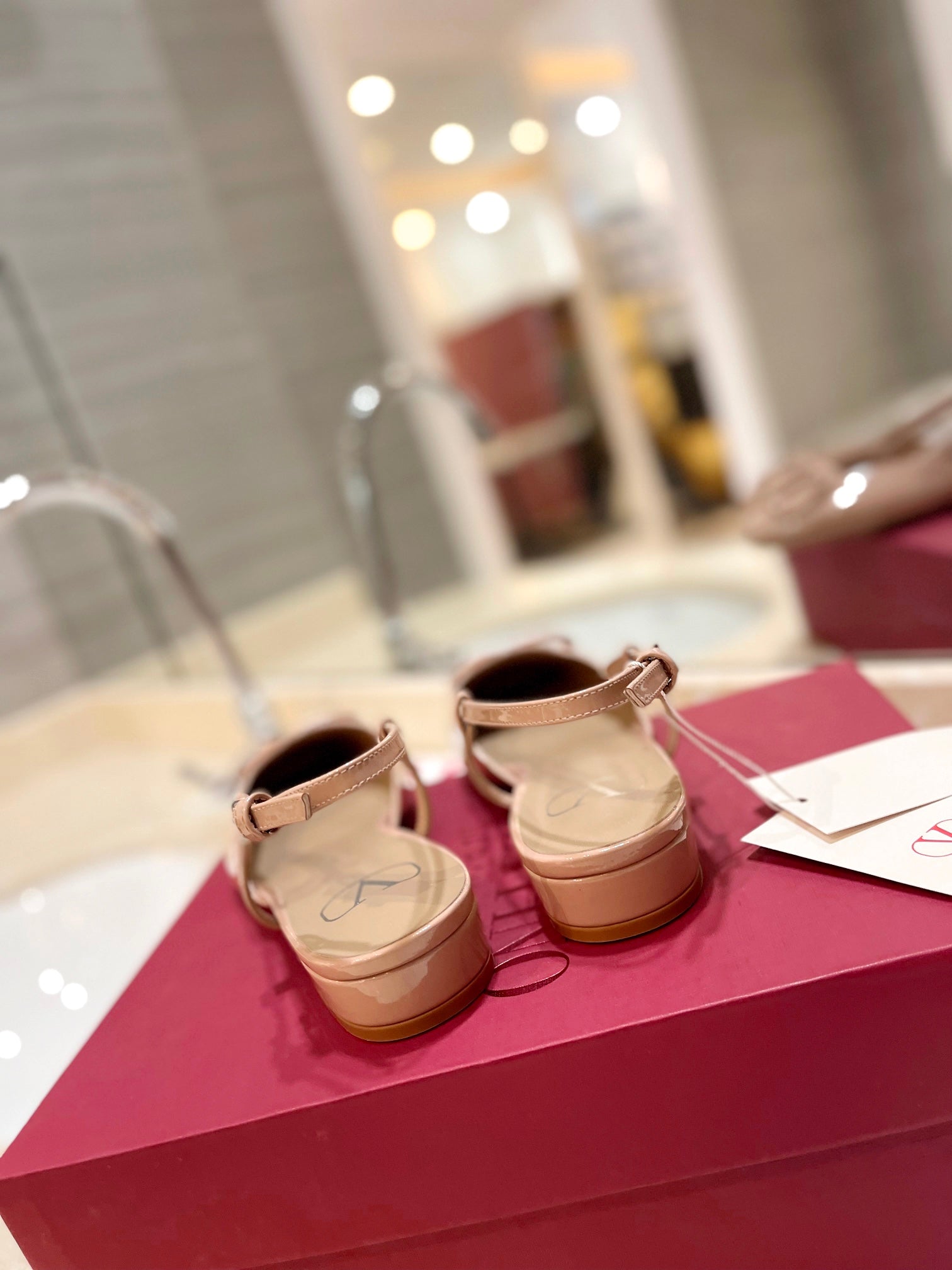 VLOGO BEIGE PATENT LEATHER SLINGBACK FLATS