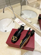 VLOGO BLACK LEATHER SLINGBACK FLATS