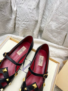 VT 26s Mary Jane Ballet Flats Black Burgundy Lambskin 611366