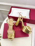 VT Garavani 25 Platform Sandals Gold Calfskin 330974