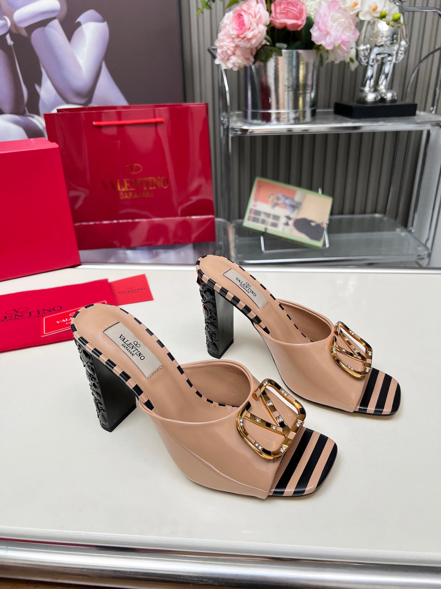 VT Vlogo High-Heeled Sandals 10.5cm Dusty Pink Patent Leather 625762