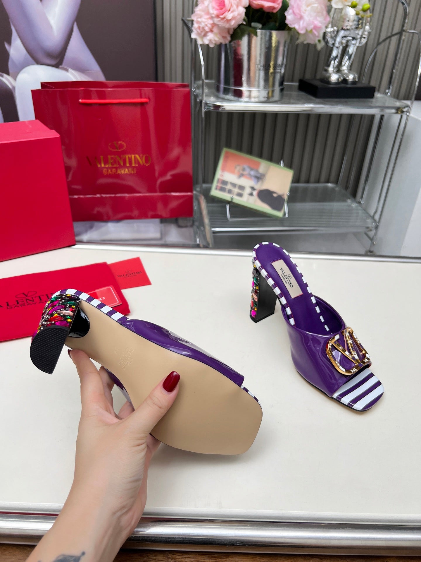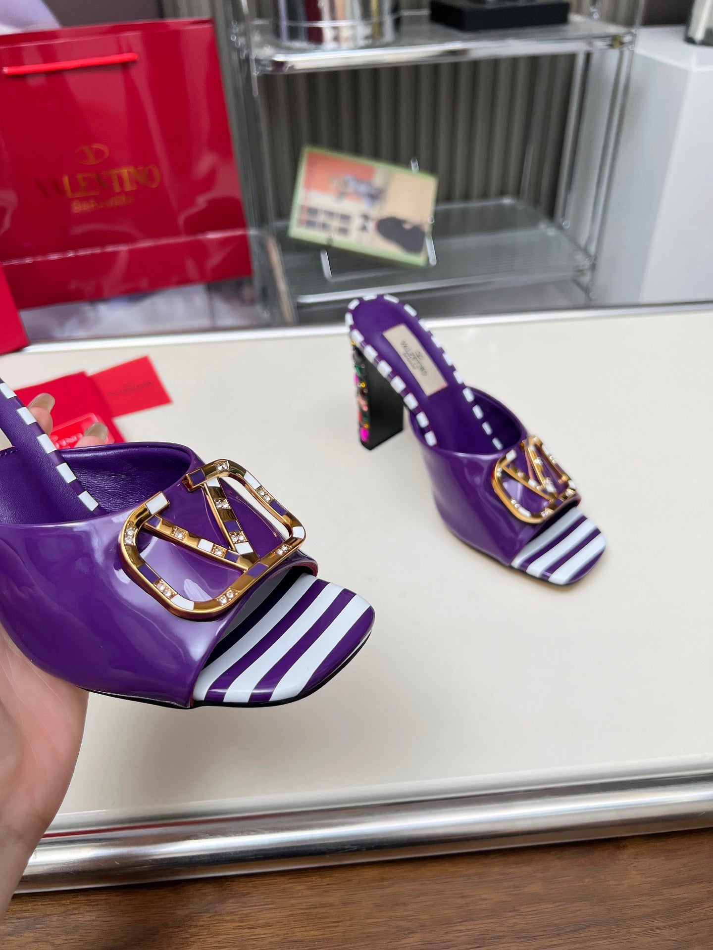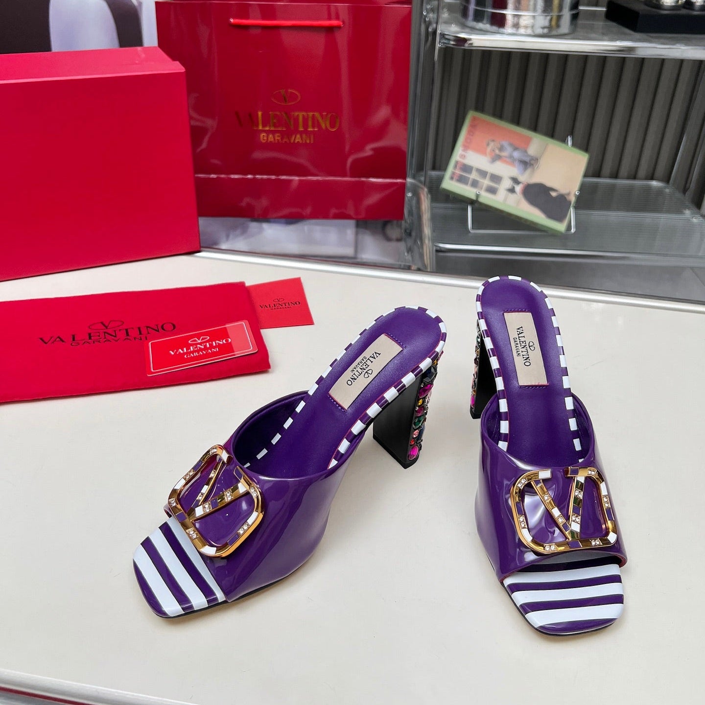 VT Vlogo High-Heeled Sandals 10.5cm Purple White Patent Leather 625763