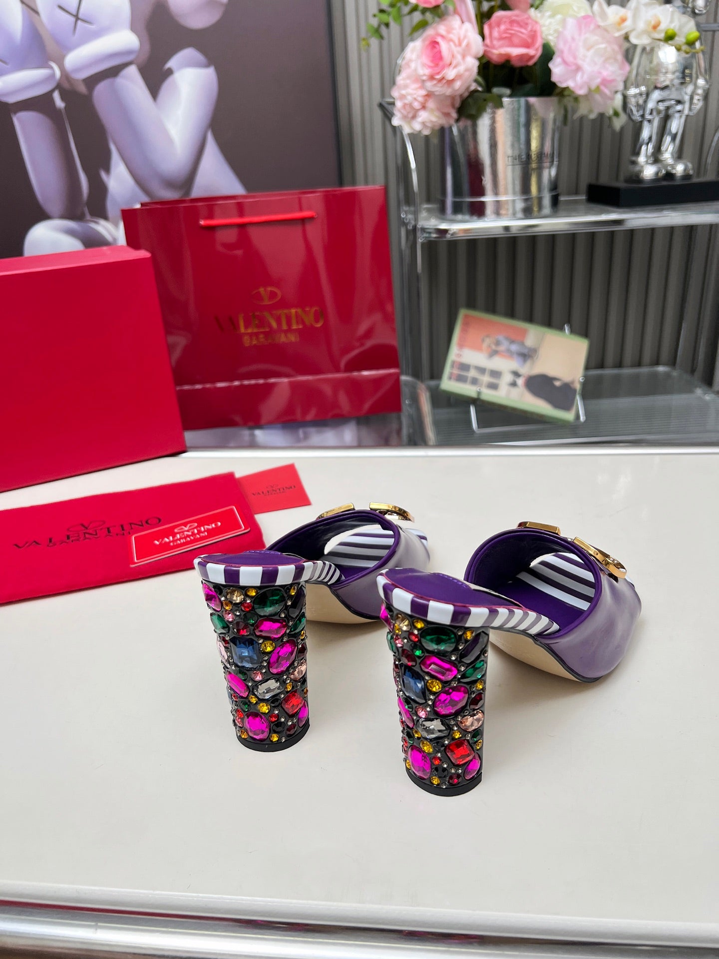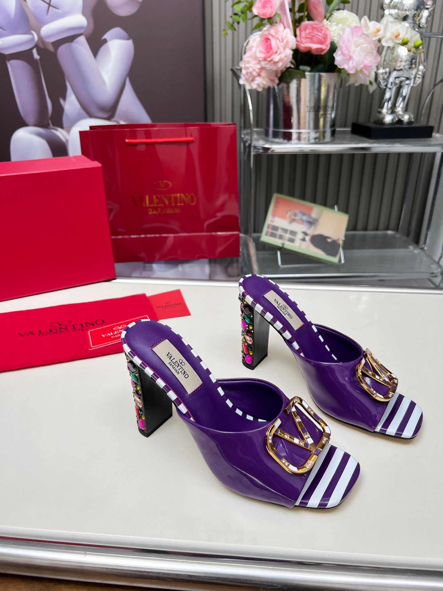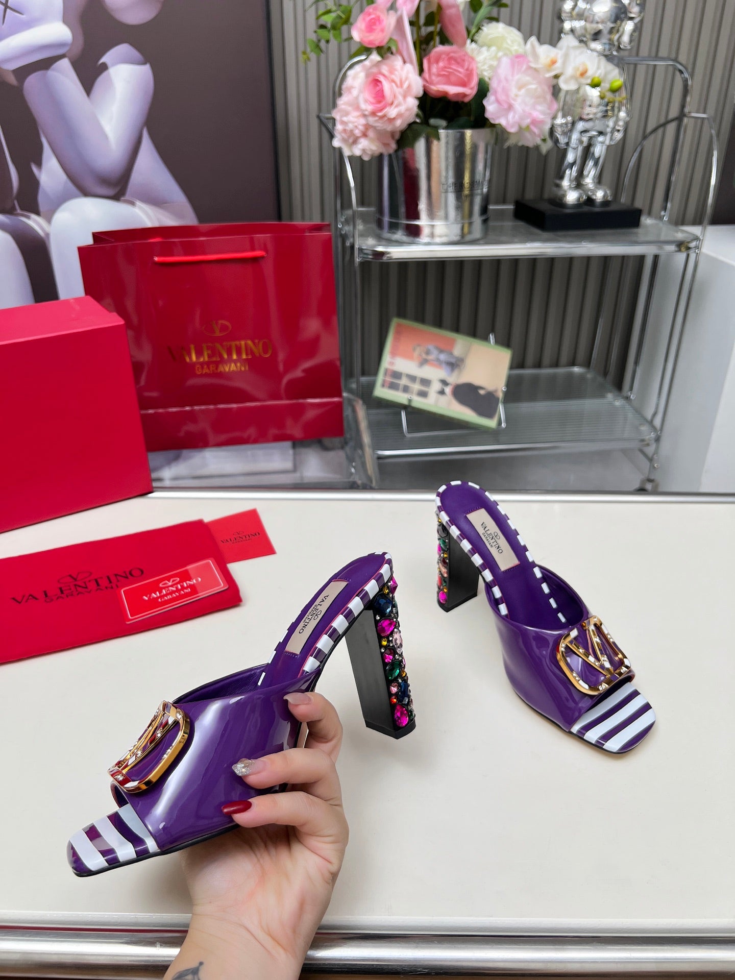 VT Vlogo High-Heeled Sandals 10.5cm Purple White Patent Leather 625763