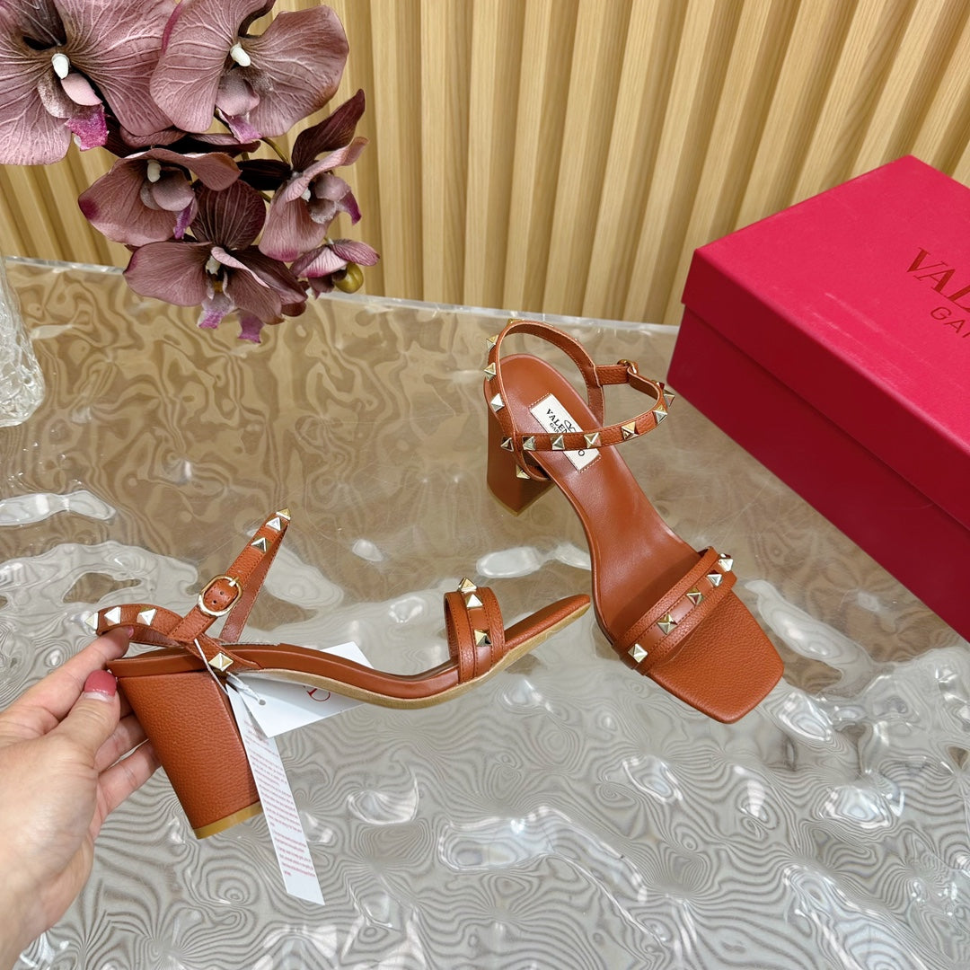 Rockstud Flatform Sandal 75mm In Brown Mix Brownish Pink Calfskin And Raffia 102856