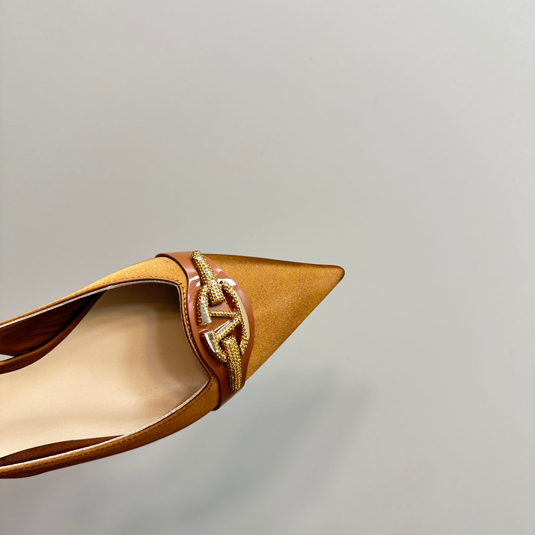 Valentino Slingback Pump 100mm In Dark Yellow Mix Gold Lambskin 999025