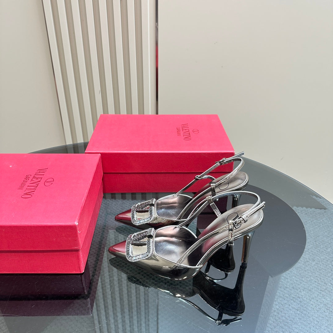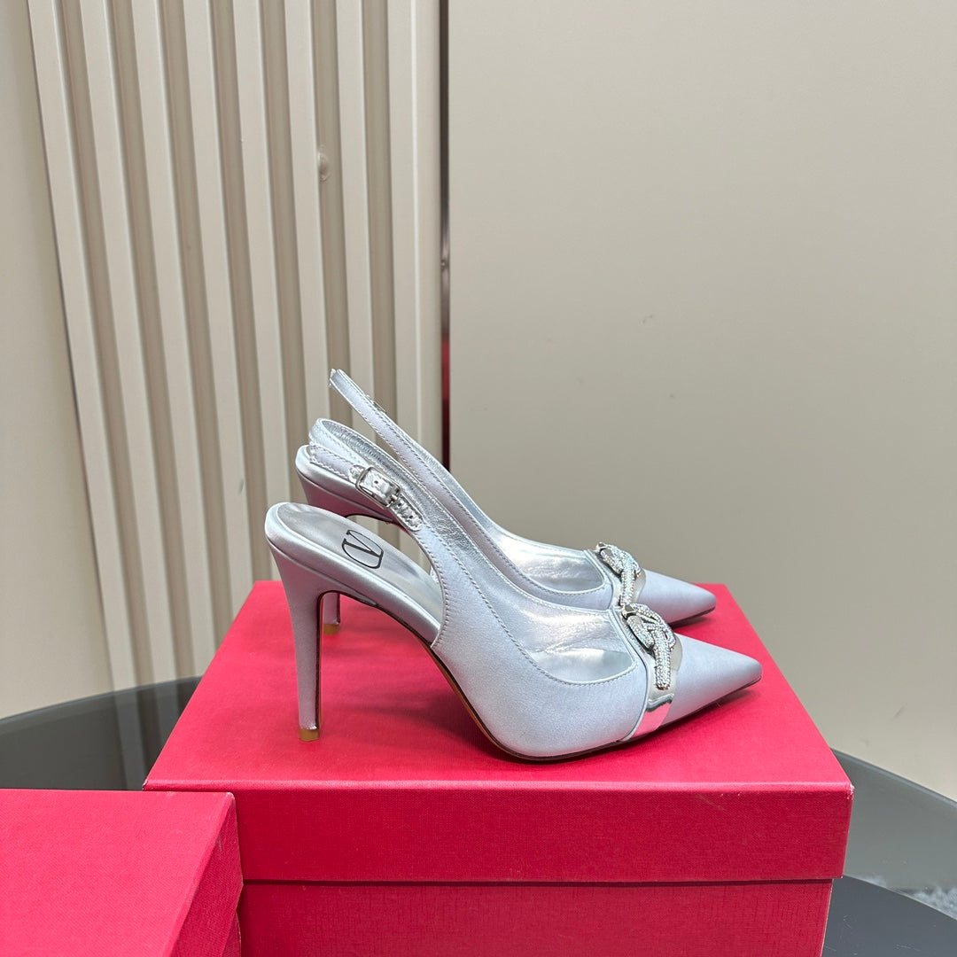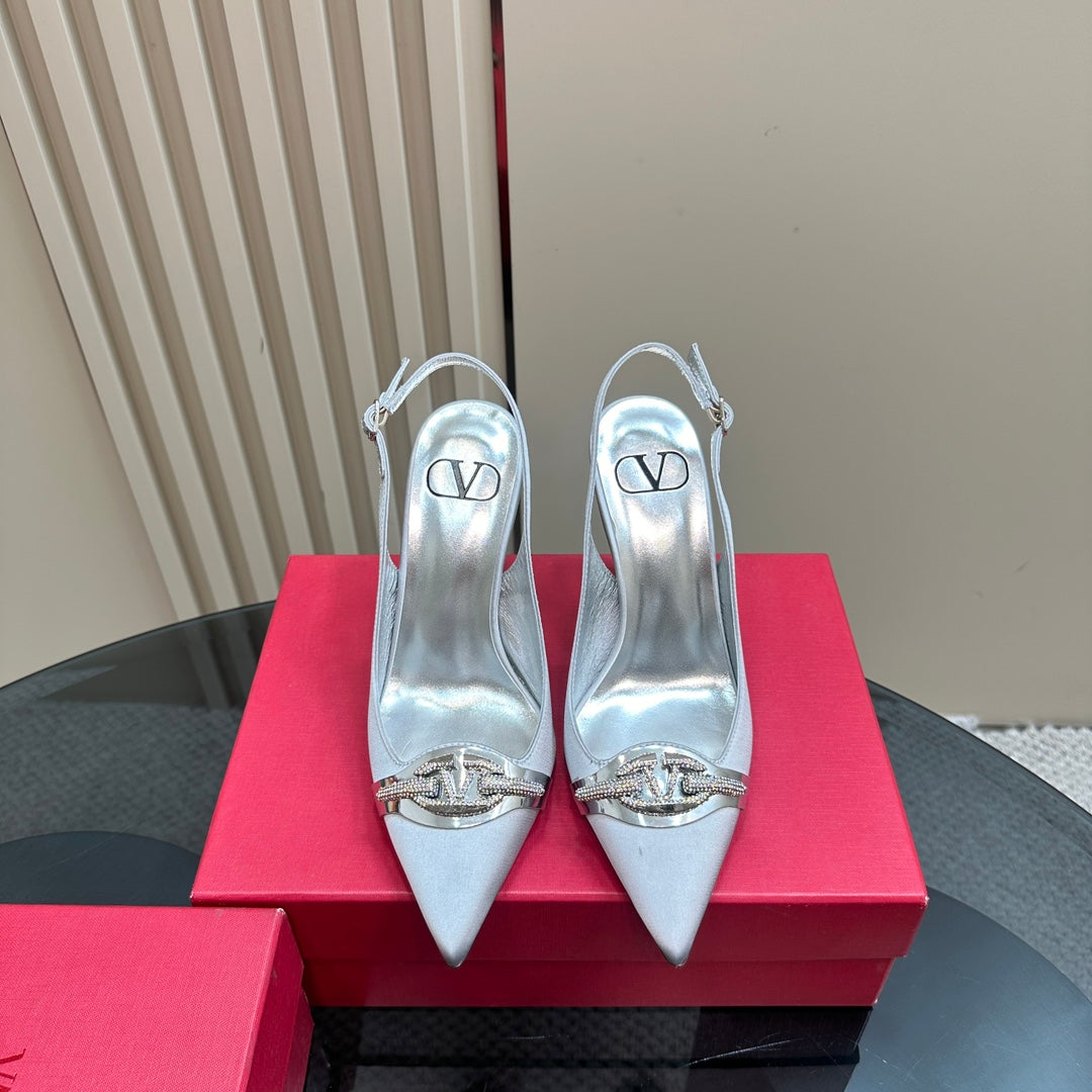 Valentino Slingback Pump 100mm In White Mix Sliver Lambskin 999027
