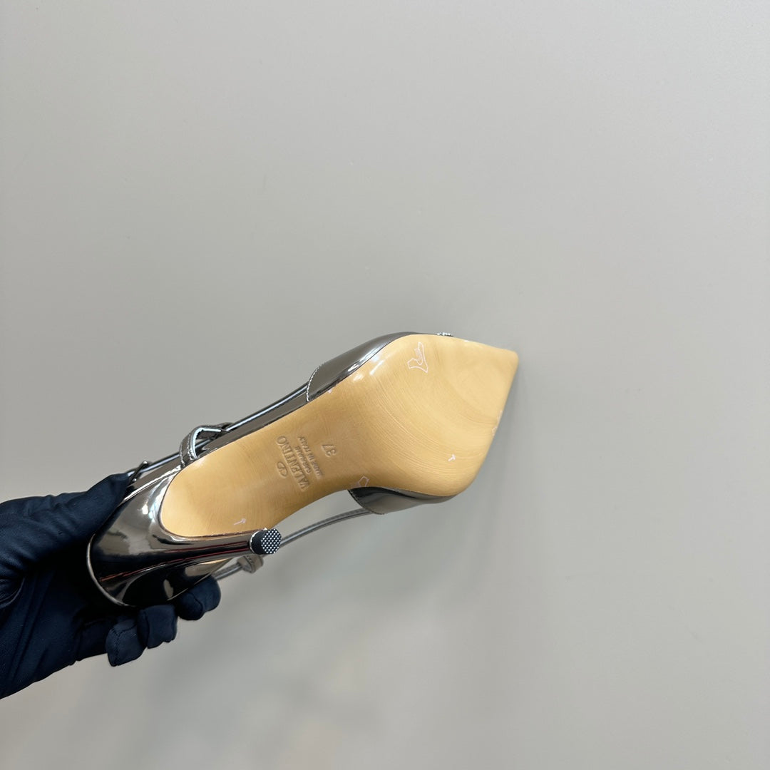 Vlogo Glow Laminated Nappa Leather Slingback Pump 100mm Dark Silver 999053