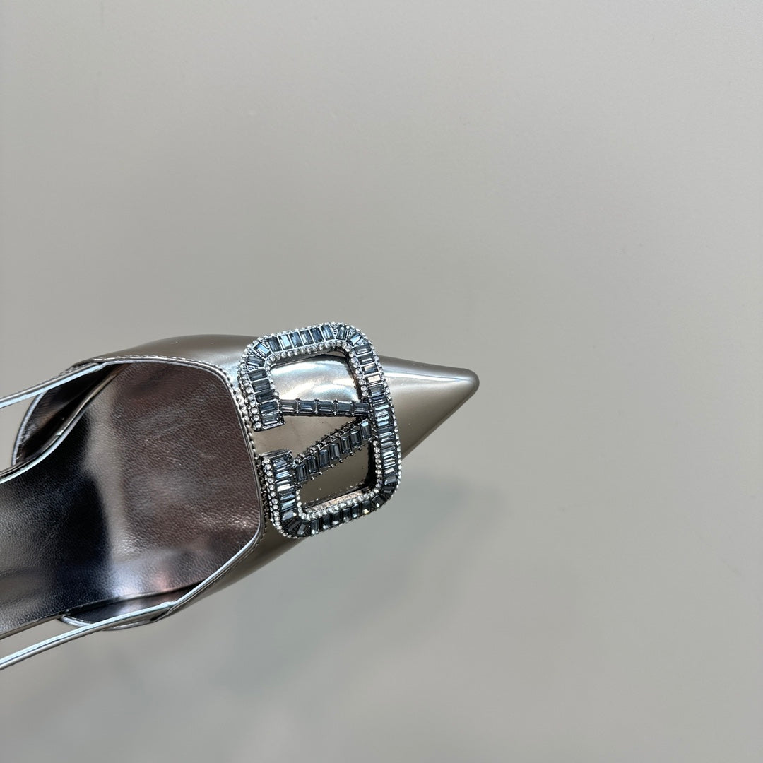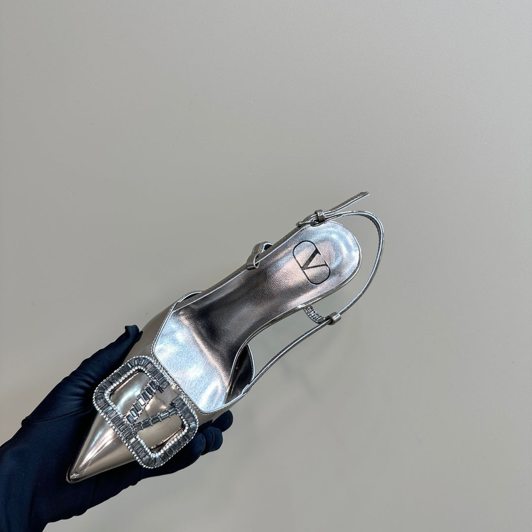 Vlogo Glow Laminated Nappa Leather Slingback Pump 65mm Sliver 999043