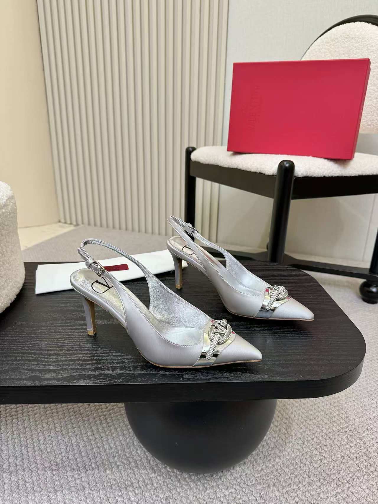 Valentino Slingback Pump 100mm In White Mix Sliver Lambskin 999027