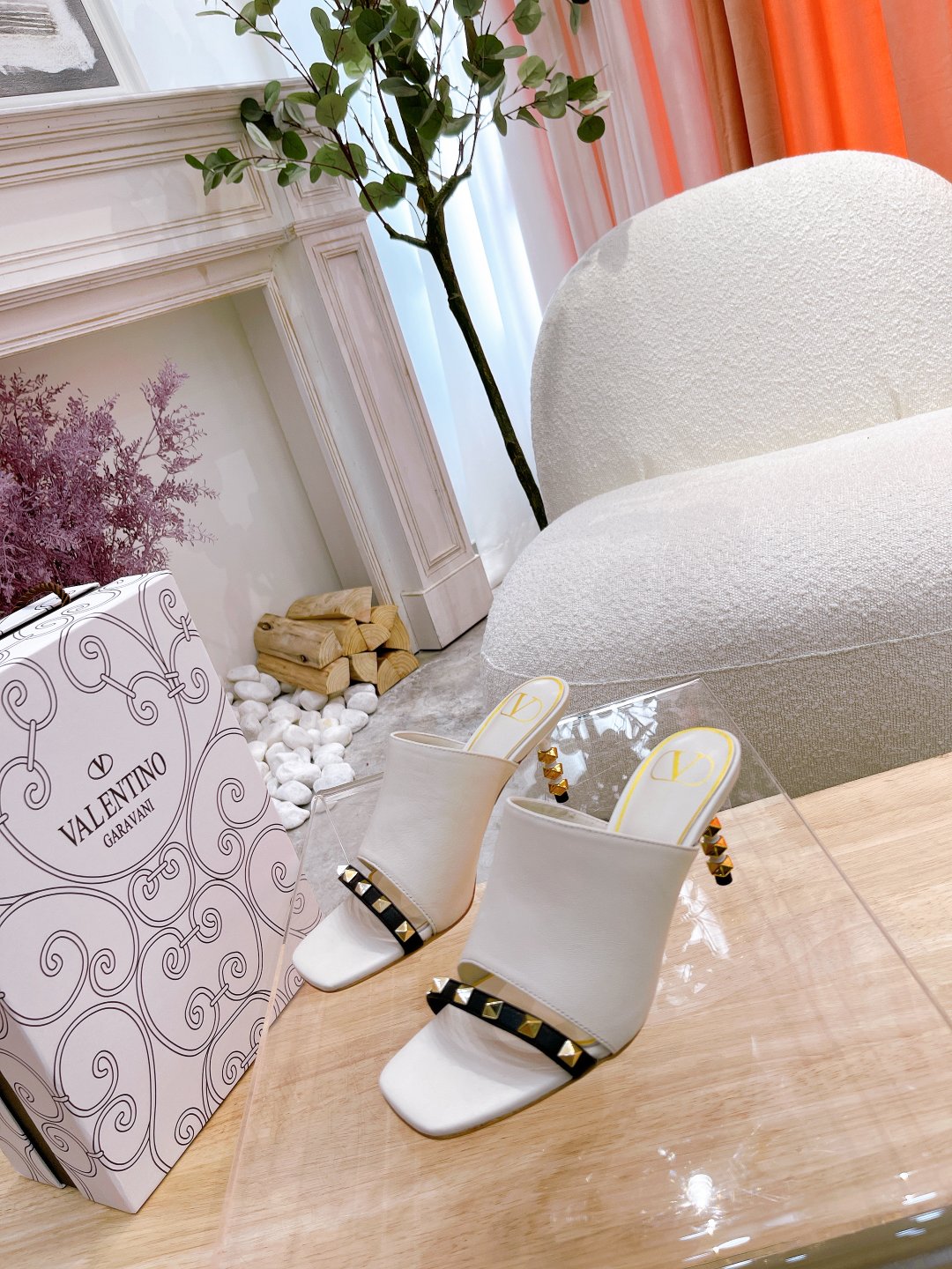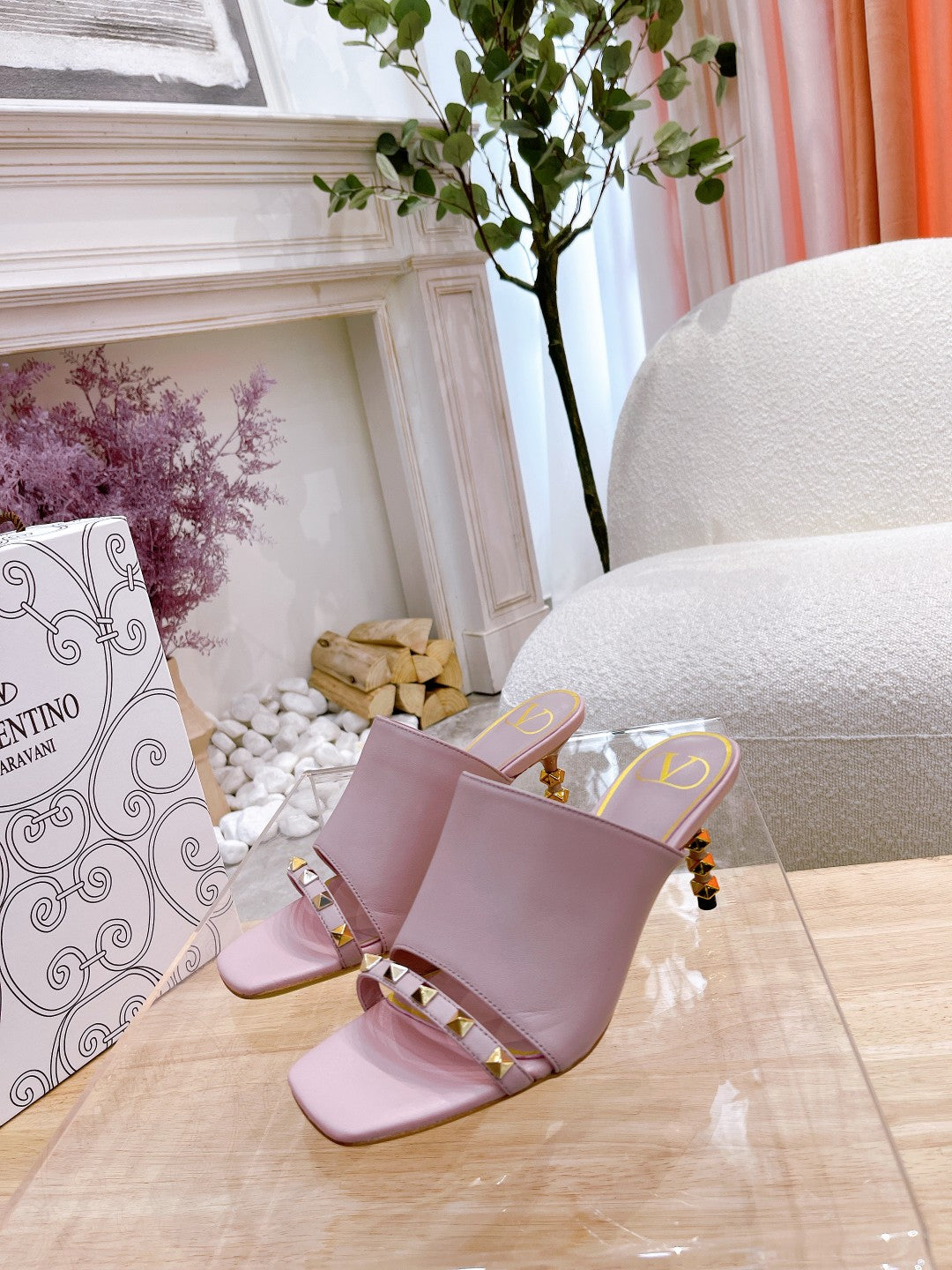 Valentino Rockstud Tower Heel Mules Sheepskin 239526