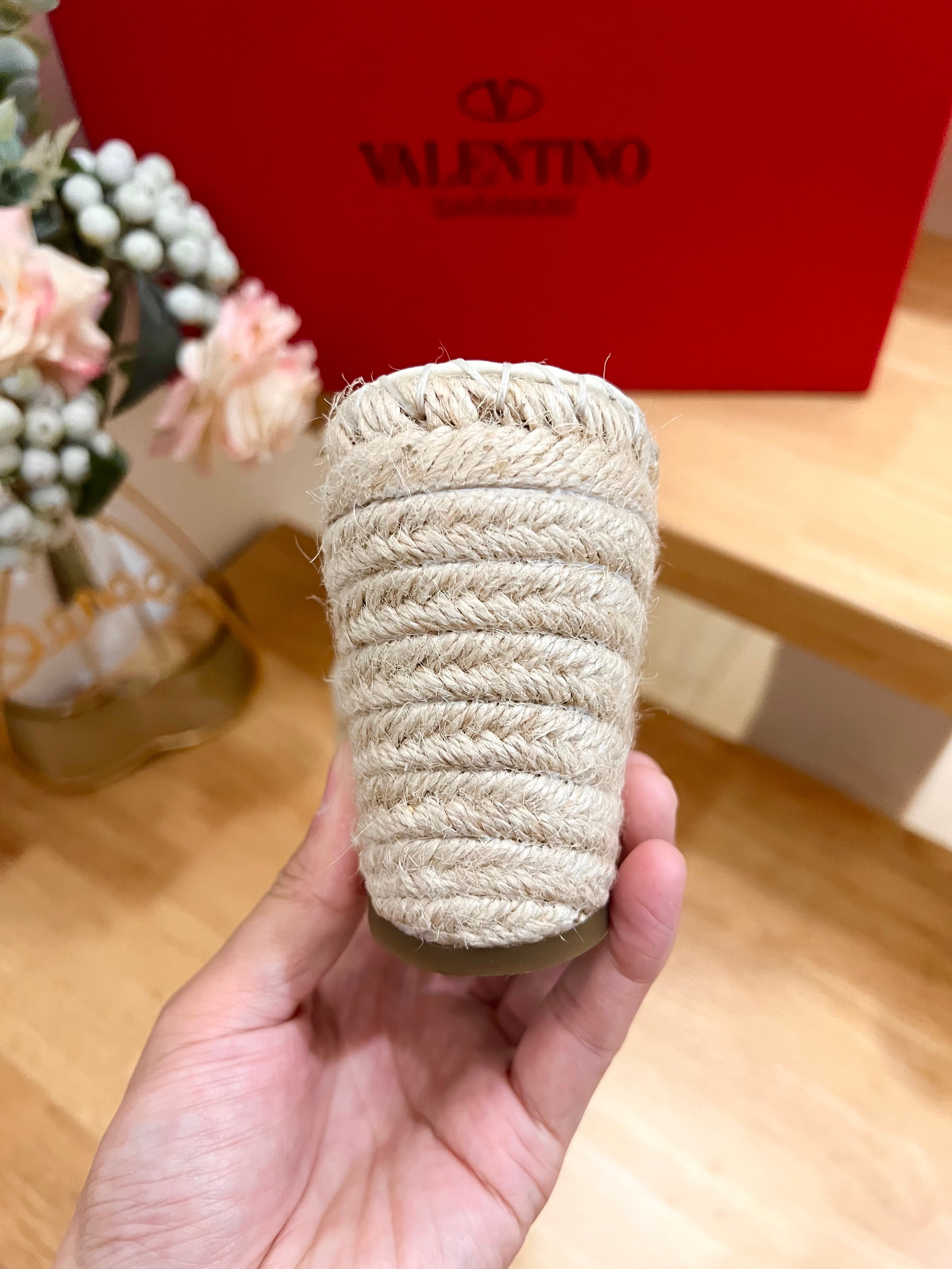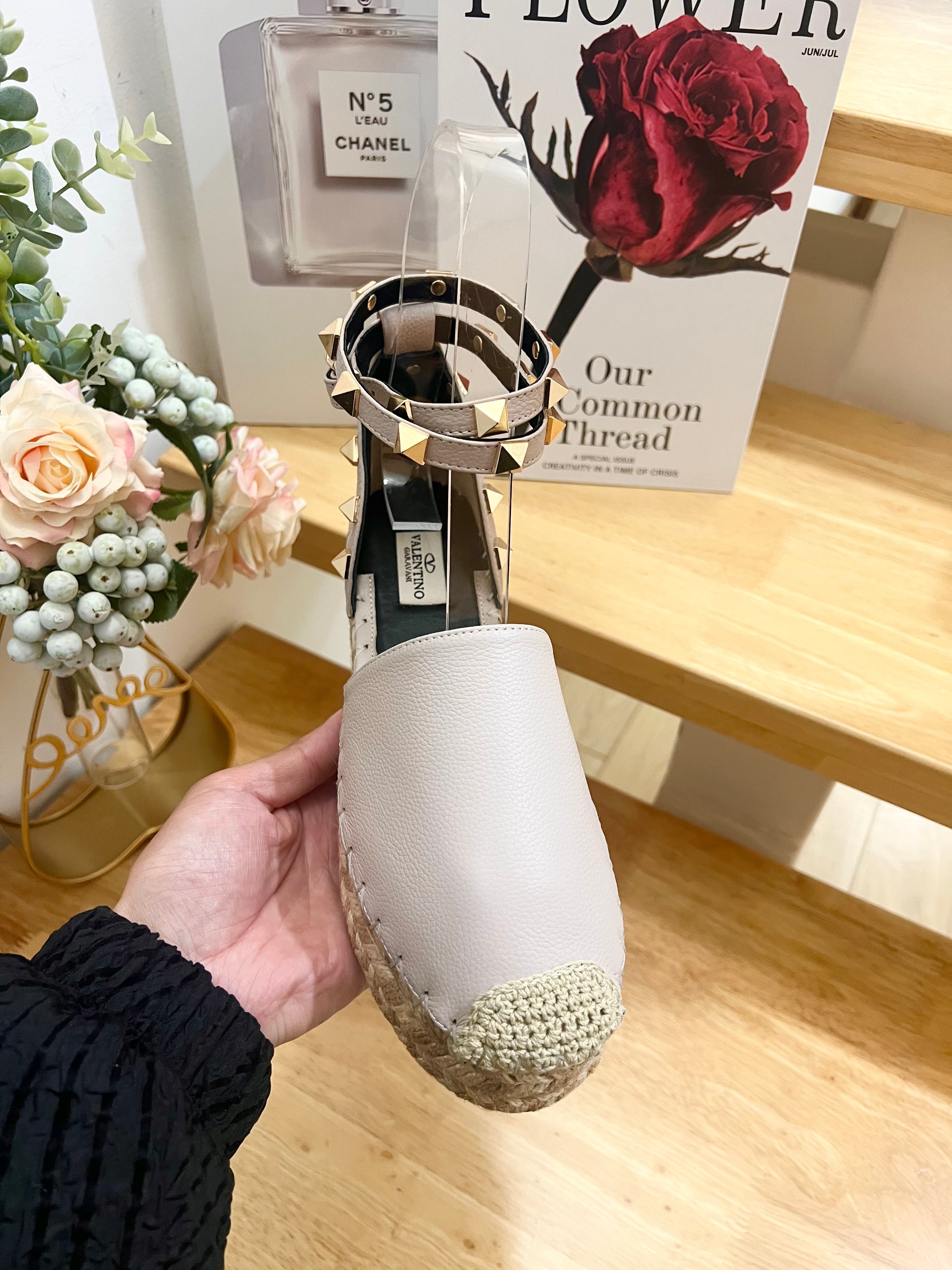 Valentino Rockstud Espadrille Sandals Beige Gray Leather 240598