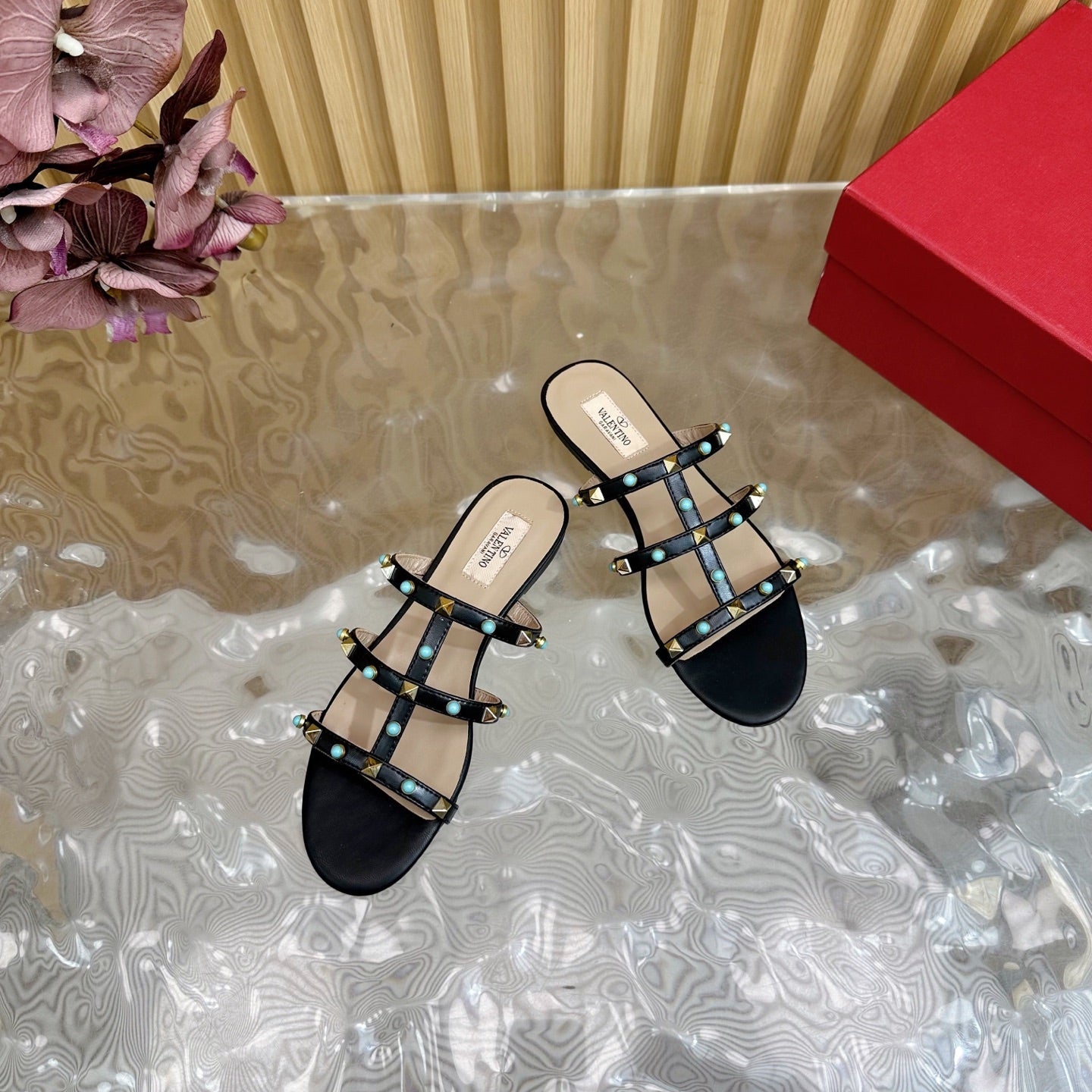 Rockstud Leather Caged Mule Sandals 10mm Black Sheepskin 307859