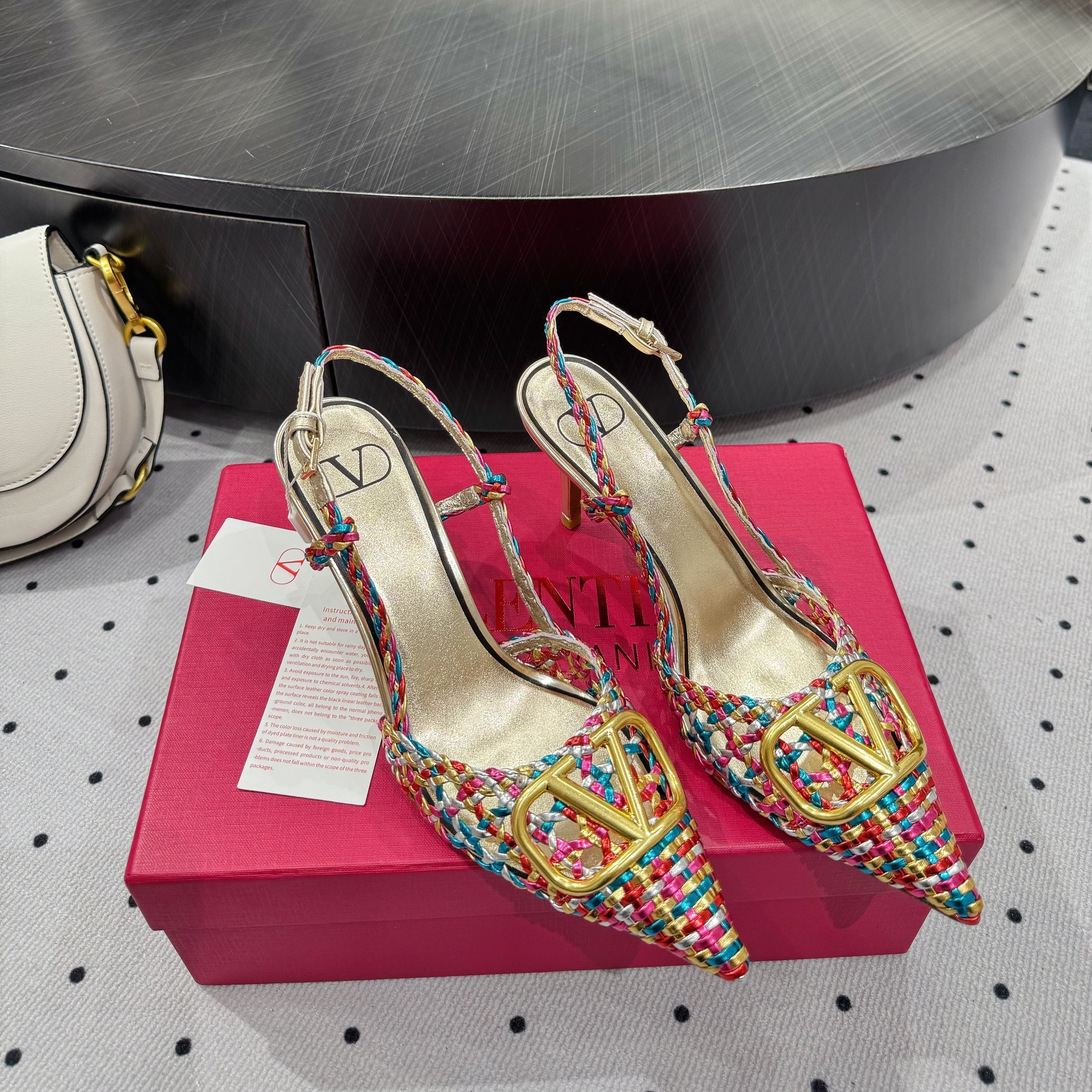 VT Vlogo Signature 75mm Pink White Slingback Sheepskin
