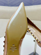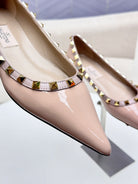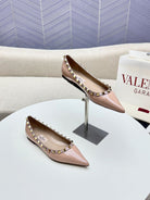 ROCKSTUD FLAT PUMP IN NUDE TAN CALFSKIN