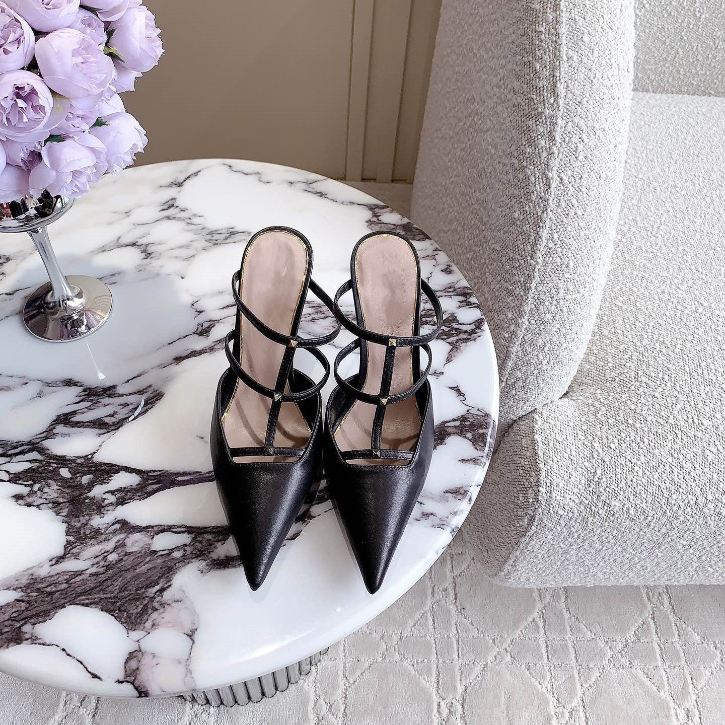 Rockstud Wispy Calfskin Mule 90mm Matte Black