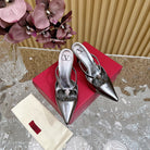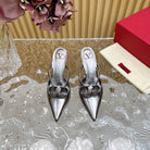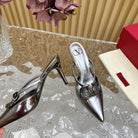 Vlogo Signature with Crystals Cut-Out Slingback Pump 70 Dark Silver Calfskin